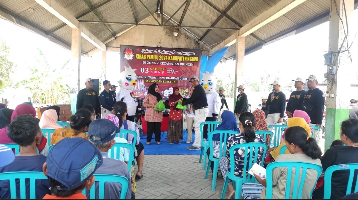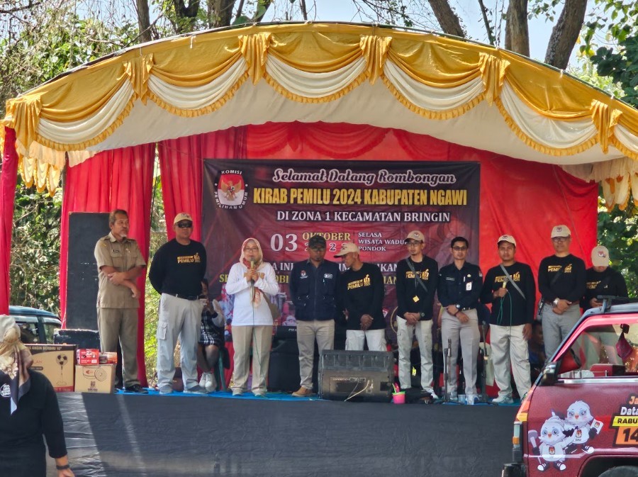 Dalam kirab Keliling, KPU Ngawi beserta PPK PPS memperkenalkan Maskot Pemilu 2024 Sura dan Sulu, memperdengarkan Jingle Pemilu 2024, serta menginformasikan tanggal pemungutan suara, jumlah surat suara, daerah pemilihan, nomor urut partai politik dan himbauan untuk memastikan apakah sudah terdaftar sebagai pemilih dengan cek DPT online melalui link cekdptonline.kpu.go.id.