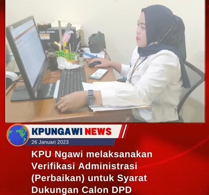 Ngawi, kab-ngawi.kpu.go.id – Kamis, 26 Januari 2023 KPU Kabupaten Ngawi melaksanakan kegiatan Verifikasi Administrasi Perbaikan Syarat Dukungan Calon Anggota DPD. Kegiatan ini merupakan tindak lanjut dari tahapan DPD yang telah dilaksanakan sebelumnya.
