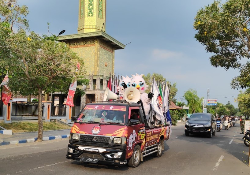 Ngawi kab-ngawi.kpu.go.id - Usai melintasi kecamatan Bringin dan Karangjati, pada pukul 14.00 WIB, rombongan Kirab Pemilu Tahun 2024 memasuki perbatasan Kecamatan Pangkur, dimana serah terima dilaksanakan di desa RinginanomKarangjati menuju wilayah Pangkur.
