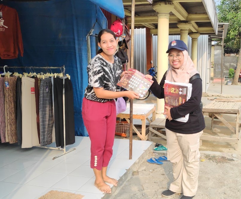 Tim Kirab pemilu juga menyapa warga para perajin tas anyaman plastik yang tengah mengerjakan di depan rumah. Mereka mendapatkan informasi tanggal pemilu, serta beberapa mendapatkan kenang-kenangan dari tim Kirab PEMILU 2024.