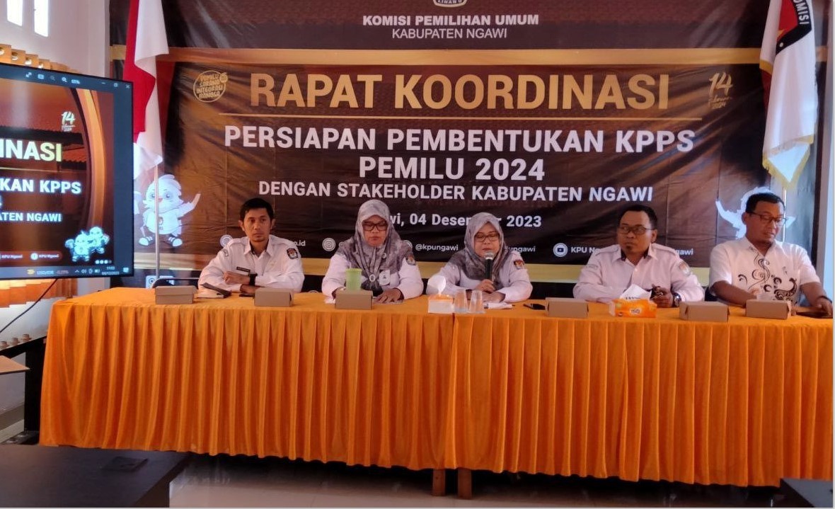 Demikian disampaikan Ketua KPU Kabupaten Ngawi Prima Aequina Sulistyanti dalam rakor dengan mengundang stakholder pada Senin, (04/12/2023). Kegiatan dihadiri unsur dari Polres Ngawi, Bawaslu Ngawi, Badan Kesatuan Bangsa dan Politik Ngawi, Dinas Pemberdayaan Masyarakat dan Desa, Satpol PP, Dinas Kesehatan, juga beberapa instansi terkait lainnya.