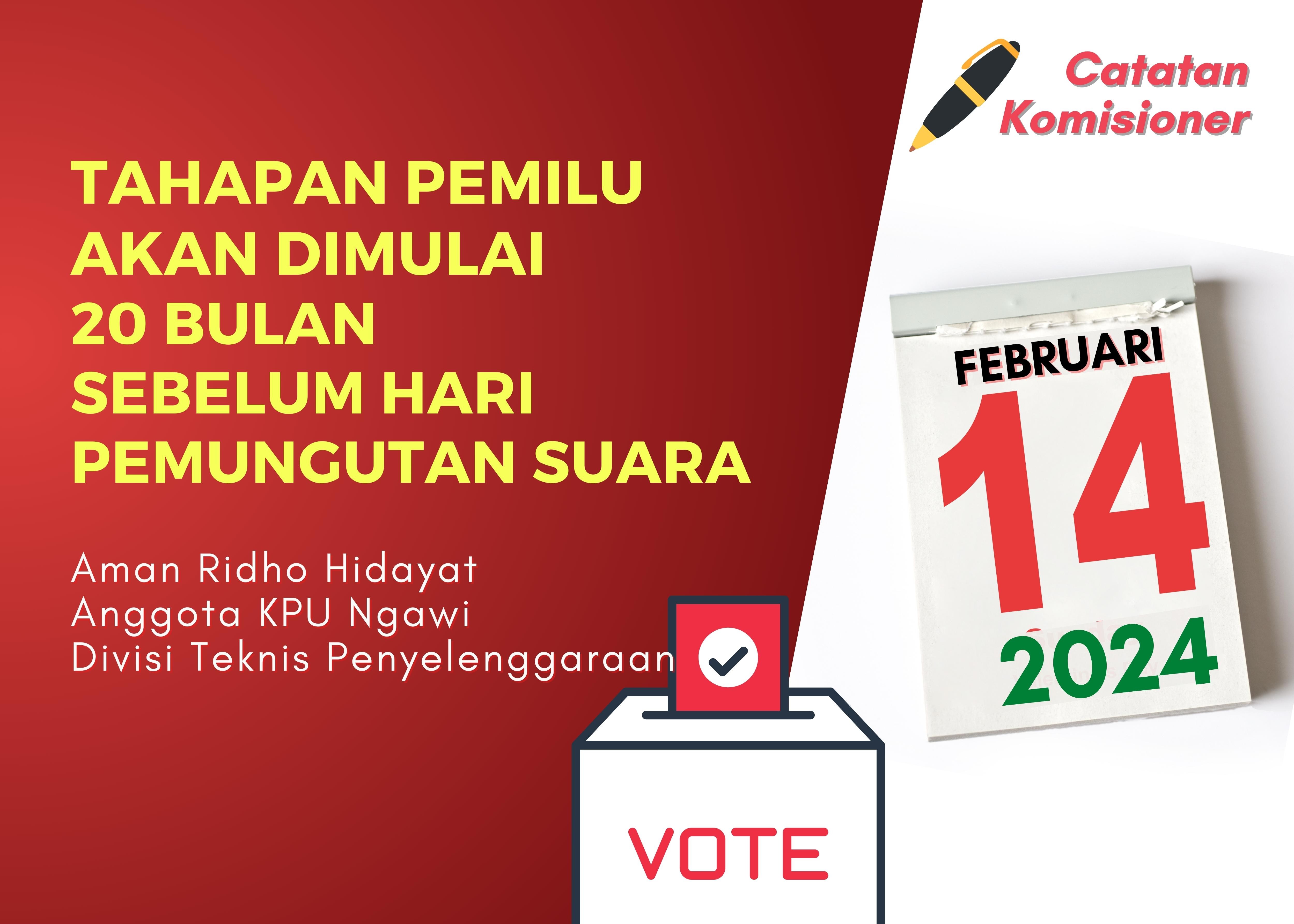 Tahapan Pemilu Akan Dimulai 20 Bulan Sebelum Hari Pemungutan Suara