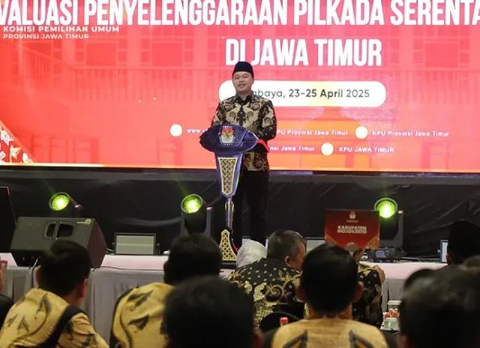 Ngawi, kab-ngawi.kpu.go.id – Jajaran Pimpinan Komisi Pemilihan Umum Kabupaten Ngawi mengikuti Rapat Pimpinan (Rapim) Evaluasi Penyelenggaraan Pemilihan Kepala Daerah (Pilkada) Serentak Tahun 2024 yang diselenggarakan oleh KPU Provinsi Jawa Timur. Kegiatan ini berlangsung pada 23–25 April 2025 di Hotel JW Marriott, Surabaya. Ketua KPU Jawa Timur, Aang Kunaifi, dalam arahannya menyampaikan bahwa Rapim ini menjadi momentum puncak evaluasi Pilkada Serentak 2024. Tidak hanya mengevaluasi substansi tugas dan tanggung jawab kepemiluan, namun juga menjadi refleksi atas pola interaksi, hubungan kerja, dan kolaborasi antara KPU provinsi dengan KPU kabupaten/kota se-Jawa Timur. Aang juga mengingatkan pentingnya membangun inovasi, komunikasi yang efektif, dan kreativitas dalam menjawab tantangan ke depan. Ia mendorong seluruh jajaran untuk terus mempererat komunikasi dengan berbagai instansi, guna memudahkan langkah-langkah kolaboratif dalam menjalankan tugas. Sementara itu, Anggota KPU Jatim Divisi Perencanaan dan Logistik, Miftahur Rozaq, memberikan apresiasi atas pengelolaan anggaran Pilkada 2024 yang dinilai baik. Ia berharap dalam proses pemeriksaan ke depan tidak ditemukan permasalahan yang dapat mengganggu reputasi dan kelancaran Pilkada. Dari sisi dokumentasi dan literasi, Anggota KPU Jatim Divisi Data dan Informasi, Insan Qoriawan, mengajak seluruh jajaran di kabupaten/kota untuk menuliskan pengalaman dan kisah nyata selama proses penyelenggaraan Pilkada. Nantinya, cerita-cerita tersebut akan dibukukan dan menjadi rujukan berharga tentang praktik kepemiluan di Jawa Timur. Anggota KPU Jatim Divisi SDM dan Litbang, Eka Wisnu Wardhana, juga menyampaikan penghargaan atas dedikasi luar biasa yang telah ditunjukkan dalam mengelola sumber daya manusia, termasuk badan adhoc. Ia berharap Pilkada serentak yang untuk pertama kalinya digelar secara nasional ini mampu melahirkan pemimpin-pemimpin terbaik bagi bangsa. Apresiasi serupa disampaikan oleh Anggota KPU Jatim Divisi Teknis Penyelenggaraan, Choirul Umam. Ia menegaskan bahwa setiap peran, sekecil apa pun, memiliki kontribusi besar terhadap kesuksesan Pilkada. Umam pun mengapresiasi pencapaian teknis yang diraih, dimana seluruh tahapan mulai dari pencalonan, pemungutan suara, hingga rekapitulasi dapat berjalan lancar tanpa pelanggaran berarti atau sengketa serius. Melengkapi evaluasi, Anggota KPU Jatim Divisi Sosialisasi, Pendidikan Pemilih, dan Partisipasi Masyarakat (Sosdiklih Parmas), Nur Salam, menyoroti keberhasilan pelaksanaan Pilkada di masa transisi. Ia menekankan pentingnya komunikasi intensif antar lembaga, termasuk lewat forum-forum koordinasi yang efektif antara KPU, PPK, hingga KPPS. Nur Salam berharap, hasil dari proses evaluasi ini menjadi bahan pembelajaran berharga untuk memperkuat penyelenggaraan pemilihan pada masa mendatang.