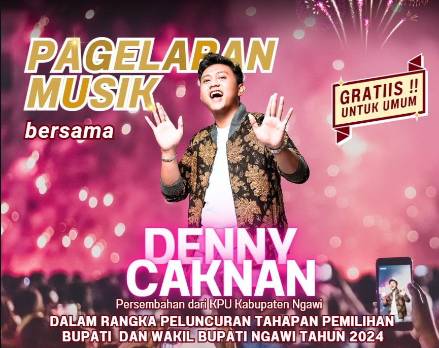 Ngawi, kab-ngawi.kpu.go.id – Penyanyi Denny Caknan, bakal tampil di kota kelahiran, tepatnya di Alun-alun Merdeka Kota Ngawi, pada Jumat malam (07/06/2024). Vocalis serta pencipta lagu ini bersama segenap personil DC musik yang bergenre Jawa kekinian itu akan tampil di Panggung Megah dalam rangka Peluncuran Tahapan Pemilihan Bupati dan Wakil Bupati Ngawi Tahun 2024. Ketua Divisi Sosialisasi Pendidikan Pemilih dan Partisipasi Masyarakat KPU Ngawi, Sudarsono menjelaskan bahwa panggung musik spektakuler tersebut, bisa disaksikan gratis untuk umum, dan akan disiarkan langsung melalui chanel Youtube KPU Ngawi, mulai pukul 19.00 WIB. “Kami Jajaran KPU Ngawi, menggelar acara dengan menggandeng Denny Caknan yang sudah merambah luar negeri ini, dalam upaya mengabarkan bahwa Pemilihan Bupati dan Wakil Bupati Ngawi Tahun 2024 akan digelar, pada 27 November 2024. Bersamaan dengan Pemilihan Gubernur Wakil Gubernur Jawa Timur” kata Pak Dar (23/5/2024). Pak Dar memprediksi, pagelaran musik tersebut akan "ambyar" mengingat tembang Denny Caknan sering tranding diberbagai flatform media sosial dan Youtube. Terlebih pagelaran ini juga gratis. Pada rangkaian kegiatan malam itu juga bakal diluncurkan maskot Pilkada Ngawi 2024. "Kami juga akan menampilkan, untuk pertama kali, maskot dengan nama Sang Pendem, atau kepanjangan dari Penegak Demokrasi." ujar mantan Jurnalis tersebut. Seperti diketahui, Kabupaten Ngawi menjadi salah satu dari 508 Kabupaten/kota di 37 provinsi yang melaksanakan Pilkada Secara Serentak pada 27 November 2024. Tahapan Pilkada di Kabupaten sendiri, sudah bergulir, termasuk pembentukan PPK dan PPS. Penampilan Denny Caknan ini juga mengingatkan kembali akan konser pada peluncuran Pemilihan Bupati dan Wakil Bupati Ngawi Tahun 2020 lalu, ditempat yang sama. Namun kali ini, bakal lebih istimewa, dengan tembang-tembang baru hits Denny Caknan. Di jagad musik tanah air, Denny Caknan telah membawakan banyak lagu dimana sebagian besar adalah ciptaannya dan seringkali tranding. Diantaranya tembang Tlah Berbeda (2017), Kampung Halaman, Tepian Nyaman (tahun 2018), Kartonyono Medot Janji, Sugeng Dalu, Sampek Tuwek, Tanpo Tresnamu (tahun 2019). Titipane Gusti, Kuatno Aku (feat. Ilux), Lekaslah Membaik, Kangen Mulih, Proliman Joyo, Los Dol, Ngawi Nagih Janji (feat. Ndarboy Genk), dan Ndas Gerih (tahun 2020), Satru (feat. Happy Asmara), Gak Pernah Cukup, Angel (feat. Cak Percil), Widodari (feat. Guyon Waton), Mletre (feat. Young Lex), dan Rungokno Aku (feat. Ndarboy Genk) (tahun 2021), Satru 2 dan Helleh (tahun 2022), Kalih Welasku, Crito Mustahil, Jajalen Aku, Wani Gelute, Cundamani, dan Wirang (tahun 2022), Dalan Gronjal, Dumes (feat. Wawes) (2023), Gampil dan Langgeng Dayaning Rasa (tahun 2024).