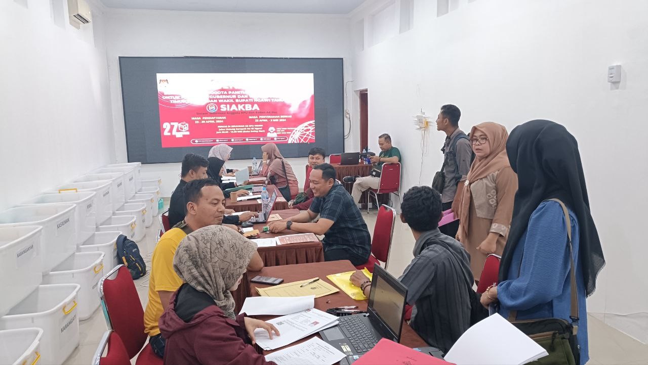 Ngawi, kab-ngawi.kpu.go.id - Komisi Pemilihan Umum (KPU) Kabupaten Ngawi hingga 28 April 2024 telah menerima sebanyak 114 berkas pendaftaran calon panitia pemilihan kecamatan (PPK) untuk Pemilihan Kepala Daerah (Pilkada) Tahun 2024 di wilayah Kabupaten Ngawi. Komisioner KPU Kabupaten Ngawi Divisi Sosialisasi Pendidikan Pemilih, Partisipasi Masyarakat, dan SDM Sudarsono, Minggu, mengatakan bahwa sejak Selasa (23/4/2024) sampai hari Minggu (28/04/2024) pukul 16.00 WIB, terdapat 114 orang yang menyerahkan berkas. Sedangkan yang telah mendaftar di https//siakba.kpu.go.id , adalah 188 orang.” kata Pak Dar. Seperti diketahui, pendaftaran PPK dan PPS menggunakan sistem informasi berbasis web (online) yaitu Sistem Informasi Anggota KPU dan Badan Ad Hoc (SIAKBA). Setelah membuat akun, maka wajib mengunggah berkas secara online, untuk kemudian melakukan klik daftar. Setelah mengunggah berkas dan klik pendaftaran secara online, pendaftar harus menyerahkan berkas di kantor KPU Kabupaten Ngawi. “Berkas asli itu nanti yang akan diverifikasi keabsahannya. Dan nantinya menjadi acuan, kelulusan secara administrasi dan menentukan calon untuk masuk ke seleksi selanjutnya” demikian disampaikan Kasubbag Hukum dan SDM Gandha Widyo Prabowo disaat membersamai tim helpdes PPK PPS. Di Kabupaten Ngawi, dibutuhkan 95 orang PPK yang akan bertugas pada 19 Kecamatan. Pendaftaran ditutup pada 29 April 2024 pada pukul 23.59 pada siakba.kpu.go.id. Adapun penyerahan berkas selambatnya tanggal 3 Mei 2024. Sebagai catatan, bagi pendaftar yang memang berhalangan untuk menyerahkan langsung ke kantor KPU Ngawi, dapat mewakilkan pada orang lain, dengan memastikan terlebih dahulu bahwa berkas telah lengkap dan nantinya mendapatkan tanda terima dari KPU Kabupaten Ngawi. Untuk seleksi selanjutnya, kemungkinan besar akan kembali dilaksanakan dengan menggandeng kerjasama dengan lembaga pendidikan, untuk seleksi dengan sistem CAT (computer assisted test). (Ds/Hupmas KPU Ngawi)