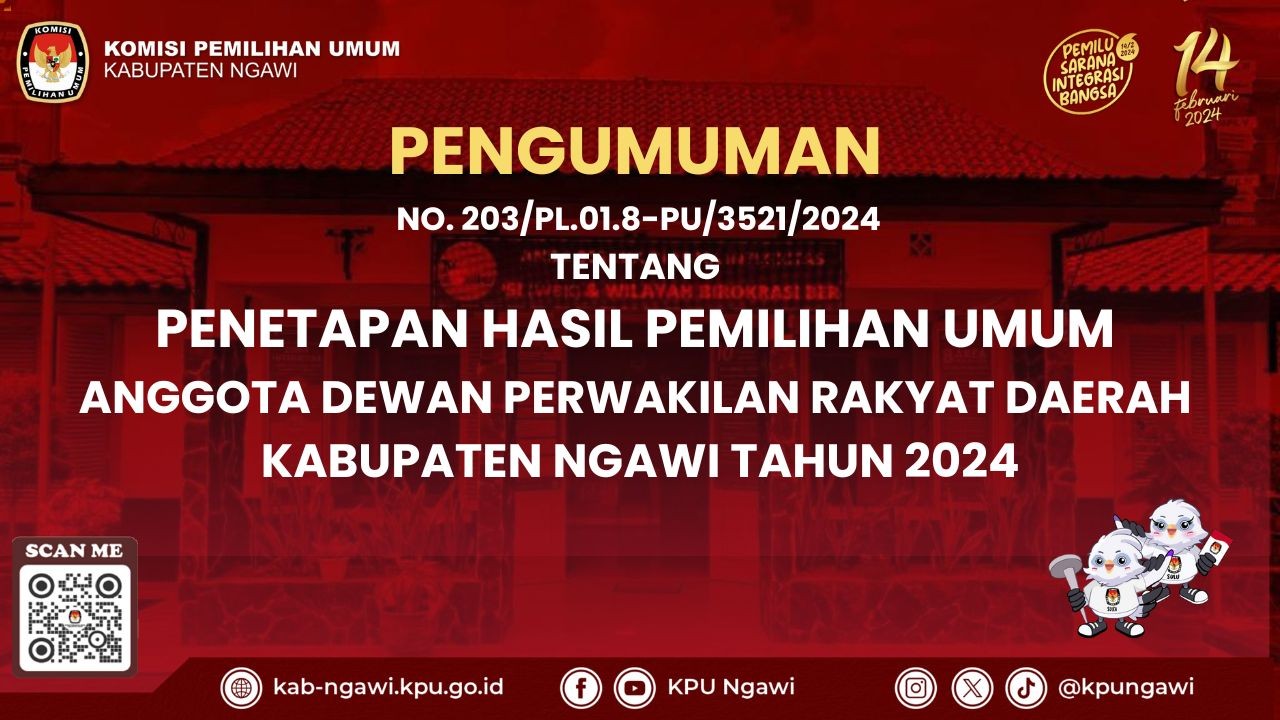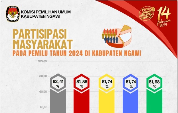 Dalam kesempatan tersebut, Bupati Ngawi menyampaikan apresiasi kepada berbagai pihak, baik penyelenggara, stakeholder, serta peserta pemilu yang telah bersama-sama mendukung pelaksanaan Pemilu di Kabupaten Ngawi.
