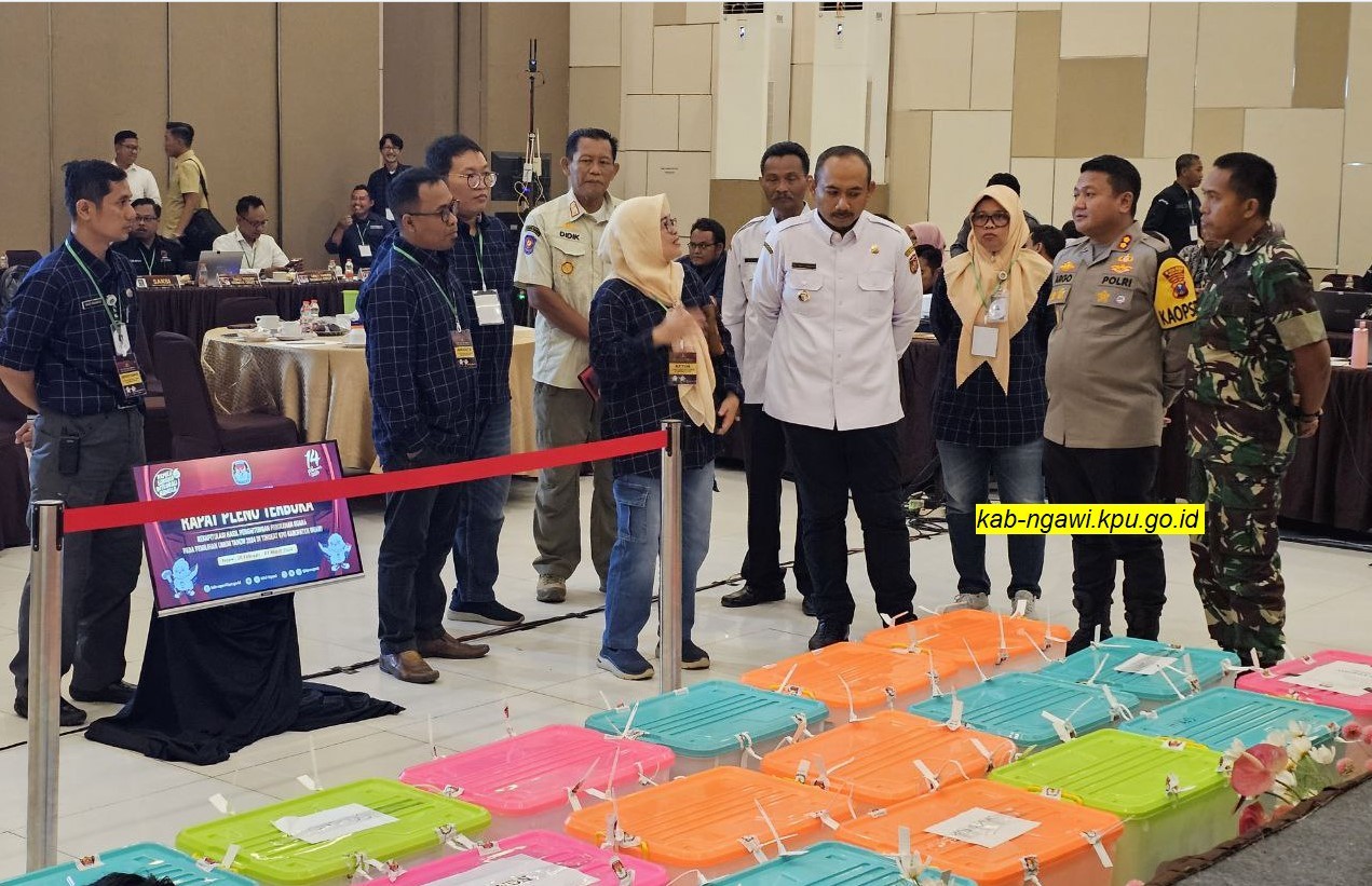 Rekapitulasi mengundang Forkopimda, Dinas/Instansi terkait, Saksi dari Partai Politik, Saksi dari Paslon Presiden dan Wakil Presiden, Bawaslu Ngawi, serta Panitia Pemilihan Kecamatan.