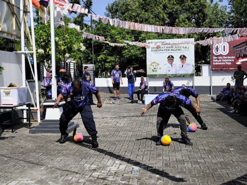 Ngawi, kab-ngawi.kpu.go.id – Suasana di halaman Kantor KPU Kabupaten Ngawi, Kamis (14/8/2025) pagi itu, jauh dari kesan formal. Riuh tawa, sorak sorai, dan tepuk tangan bergemuruh, menyatu dalam semangat kemerdekaan. Sejak pukul 07.30 WIB, seluruh pegawai KPU Ngawi dari pimpinan hingga staf larut dalam kemeriahan lomba peringatan Hari Ulang Tahun ke-80 Republik Indonesia. Acara diawali dengan senam bersama yang menghangatkan badan sekaligus membakar semangat. Usai senam, halaman kantor berubah menjadi arena lomba seru. Ada pukul air dengan mata tertutup, estafet air, rias wajah dengan mata tertutup, giring bola dengan terong, hingga berbagai lomba unik lainnya. Gelak tawa tak terbendung ketika peserta kesulitan menggiring bola dengan terong, atau saat rias wajah berubah menjadi karya seni dadakan ala punokawan. Bahkan dalam lomba estafet air, semua peserta rela basah kuyup karena wadah yang bocor justru menambah keriuhan. Puncak acara semakin hangat dengan tradisi tahunan tukar kado misterius. Setiap pegawai membawa kado yang dibungkus plastik hitam tanpa tanda, lalu dikumpulkan dan diambilsecara acak. Dalam hitungan serentak, peserta membuka kado dengan penasaran.Dan ketika dibuka.. isinyapun beragam, mulai dari mie instan, kaos, centhong nasi, deterjen, hingga timbangan tepung, maupun snack hingga alat rumahtangga. Kejutan demi kejutan membuat suasana pecah oleh gelak tawa. “Tujuan acara hari ini sederhana, supaya semua pegawai bisa tertawa bersama, merasa senang, dan semakin kompak. Ternyata hasilnya jauh lebih meriah dari yang dibayangkan,” tutur Sekretaris KPU Ngawi, Budi Rahayu. Sementara itu, Ketua KPU Ngawi Samsu Mustakim yang ikut serta dalam lomba tak kuasa menahan tawa ketika wajahnya dirias oleh rekan-rekan. “Enggak nyangka wajah saya jadi bahan riasan. Tapi seru banget, karena kita bisa menertawakan diri sendiri, melepaskan penat, dan sekaligus mempererat persaudaraan di lingkungan kerja,” ujarnya sambil tersenyum. Agar lebih semarak, panitia membagi peserta menjadi sembilan tim dengan identitas pita warna-warni yang diikat di pergelangan tangan. Salah seorang Kasubbag, Nurfanti SW, menyebutkan bahwa lomba ini bukan semata soal menang atau kalah, tetapi lebih pada merayakan kebersamaan. “Yang utama adalah kita bisa memeriahkan Hari Kemerdekaan dengan cara yang menyenangkan,” katanya. Acara berlangsung hingga pukul 11.30 WIB, lalu ditutup dengan istirahat, makan siang, dan sholat di mushola kantor. Setelah jam istirahat, seluruh pegawai kembali ke meja kerja masing-masing dengan wajah penuh senyum dan energi baru. Semangat 17-an di KPU Ngawi ini menjadi bukti bahwa mengisi kemerdekaan bukan hanya dengan bekerja, tetapi juga dengan merawat kebersamaan, kegembiraan, dan persaudaraan di tengah rutinitas penyelenggaraan demokrasi.