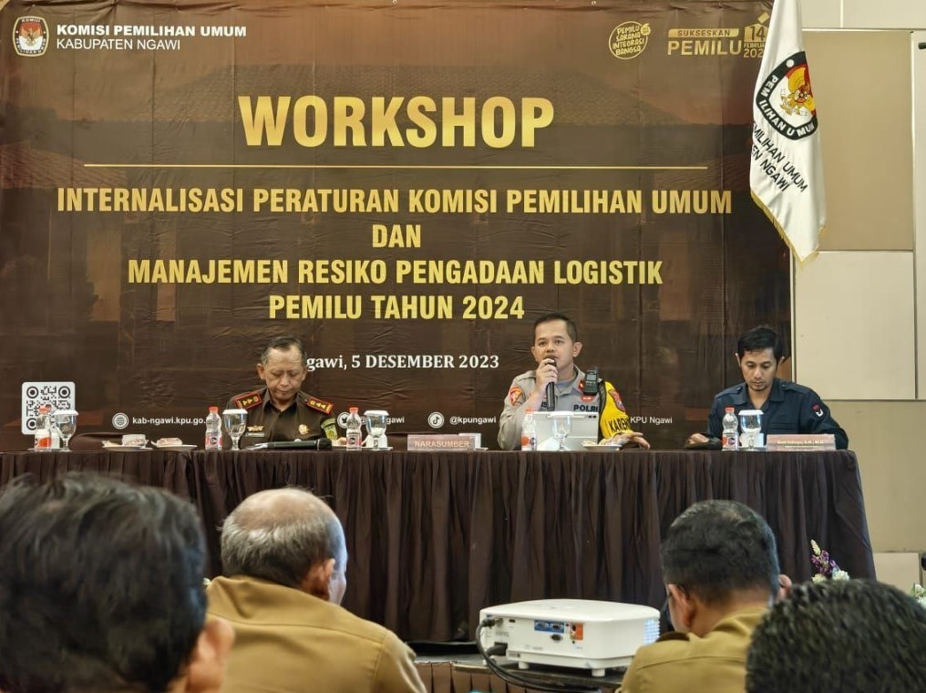 Ngawi, kab-ngawi.kpu.go.id – KPU Ngawi melaksanakan Workshop Internalisasi Peraturan KPU dan Manajemen Risiko Pengadaan Logistik Pemilu 2024. Agenda dilaksanakan di Kurnia Convention Hall pada Selasa, 5 Desember 2023. Acara dibuka oleh Ketua KPU Kabupaten Ngawi Prima Aequina Sulistyanti. Pihaknya memandang penting untuk mengadakan workshop dalam rangka mendukung pengelolaan logistik pemilu di Kabupaten Ngawi. “Kami memohon suport, mohon dukungan dari berbagai pihak termasuk Dinas/Instansi. Agar setiap tahapan lancar termasuk pengelolaan dan distribusi logistik,” kata Prima. Prima juga menyampaikan bahwa hingga saat ini KPU telah menerima logistik Pemilu berupa Bilik Suara 11.030 buah, Tinta 5.508 buah, Segel plastik 71.604 buah, Segel 264.815 buah, Kotak Suara 13.808 unit, dan label identitas kotak suara 27.540 buah. Workshop yang diikuti oleh Bawaslu Ngawi, Dinas Instansi terkait serta sekretariat KPU Ngawi ini, menyajikan materi dari Budi Raharjo Kepala Kejaksaan Negeri Ngawi serta Kompol Khristanto Widhy Nugroho Kabagops Polres Ngawi. Budi Raharjo menyampaikan, Kejaksaan memiliki peran dalam pencegahan dan deteksi dini terhadap pelanggaran hukum dalam hal pengadaan barang dan jasa. Untuk itu, pihaknya berpesan kepada Lembaga Pemerintah termasuk KPU untuk memedomani regulasi dalam pengadaan. “Dalam hal pengadaan harus dilakukan sesuai ketentuan. Jangan sampai ada korupsi. KPU Ngawi yang juga sama dengan lembaga lain, tengah melaksanakan kegiatan dengan didanai keuangan negara. Maka pastikan memenuhi tugas sesuai ketentuan dan dengan kehati-hatian. Namun begitu, tidak perlu kawatir,” kata Budi Raharjo. Lebih lanjut, Budi Raharjo dalam materinya meminta kewaspadaan dan akurasi dalam hal pengadaan. Sementara itu, Kompol Khristanto Widhy Nugroho dalam materinya menyampaikan perihal pentingnya antisipasi segala risiko untuk menjamin keamanan logistik dalam Pemilu 2024. “Pemetaan risiko meliputi beberapa hal yang harus dicegah atau diantisipasi. Seperti Keterlambatan Logitisk, Kerusakan Logistik, Cuaca Buruk, Keamanan, Perubahan aturan maupun sisi Sumber Daya Manusia,” ujarnya. Kepada peserta yang hadir, Kompol Khris juga menyampaikan komitmen Polres Ngawi untuk mendukung sukses Pemilu di Kabupaten Ngawi. “Kami siap mengawal Pemilu ini. Kemarin sudah melaksanakan simulasi pengamanan bersama berbagai pihak. Dan saat logistik mulai datang, kami juga aktif mendukung pengamanan didukung juga oleh TNI.” pungkasnya. (Humas KPU Ngawi/ Bimo We/Dok Aji Surya).