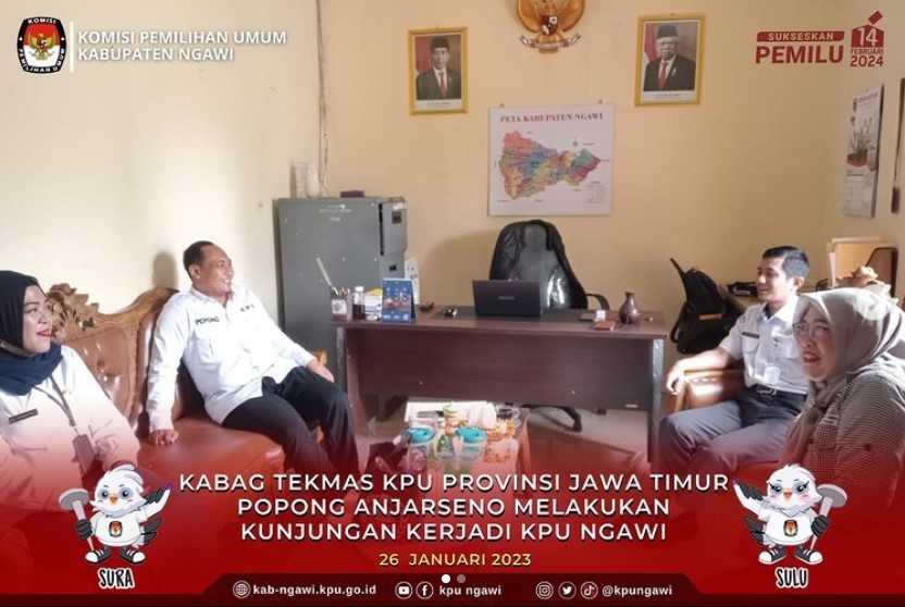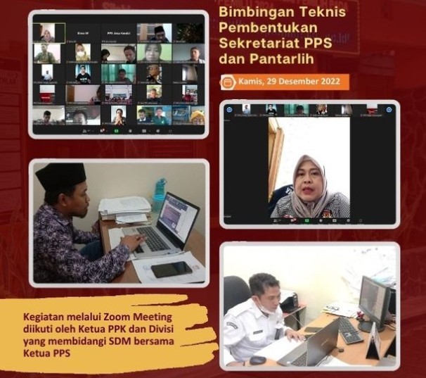 Ngawi, kab-ngawi.kpu.go.id - KPU Kabupaten Ngawi pada Kamis siang 26 Januari 2023, melaksanakan Bimbingan Teknis dalam rangka pembentukan Sekretariat PPS dan Rekrutmen Pantarlih. Kegiatan dilaksanakan melalui Zoom bersama PPK dan Ketua PPS di Kabupaten Ngawi. Ketua KPU Kabupaten Ngawi Prima Aequina Sulistyanti menjadi pengantar pada kegiatan tersebut. Bu Prima menegaskan kepada PPK Panitia Pemungutan Suara untuk memastikan bahwa nama-nama calon Sekretariat nantinya harus sosok yang bisa bekerja dan bekerjasama. Bekerja adalah sesuai dengan tugas pokok dan fungsinya. Adapun bekerjasama berarti bisa bersinergi dengan rekan kerja atau tim. Kegiatan yang dipandu oleh Kasubbag Hukum SDM Burhani Agus Sukmana itu, menyajikan materi dari Sudarsono Anggota KPU Ngawi Divisi SosIalisasi Pendidikan Pemilih, Partisipasi Masyarakat dan SDM. Pak Dar menyampaikan cara pendaftaran serta berbagai kelengkapan administrasi yang diperlukan dalam pembentukan Sekretariat dan Pantarlih. (Humas KPU Ngawi)