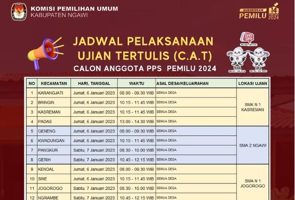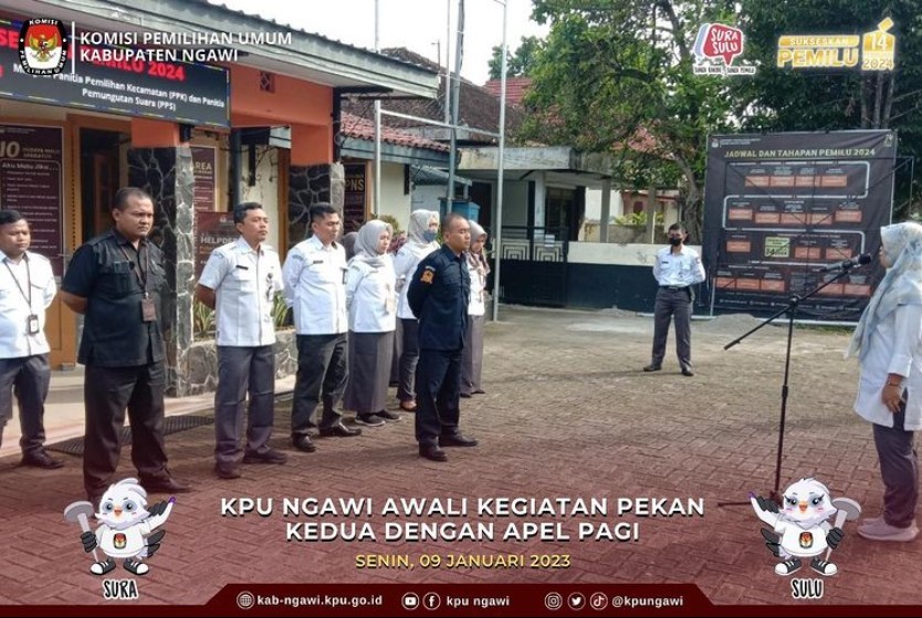 Ngawi, kab-ngawi.kpu.go.id - KPU Ngawi melaksanakan Pelantikan Panitia Pemilihan Kecamatan (PPK) Pemilu 2024. Kegiatan dilaksanakan di Kurnia Convention Hall Jl. Soekarno Ngawi pada Rabu 4 Januari 2024.