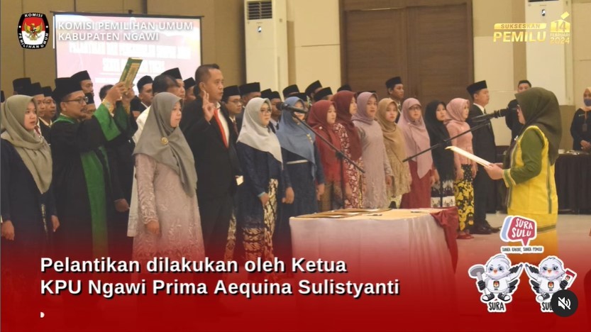 Kegiatan dihadiri Bupati Ngawi, Forkopimda, Bawaslu, Kepala Instansi terkait dan Camat. Adapun Pelantikan dan pengambilan Sumpah Janji dilakukan oleh Ketua KPU Kabupaten Ngawi Prima Aequina Sulistyanti.