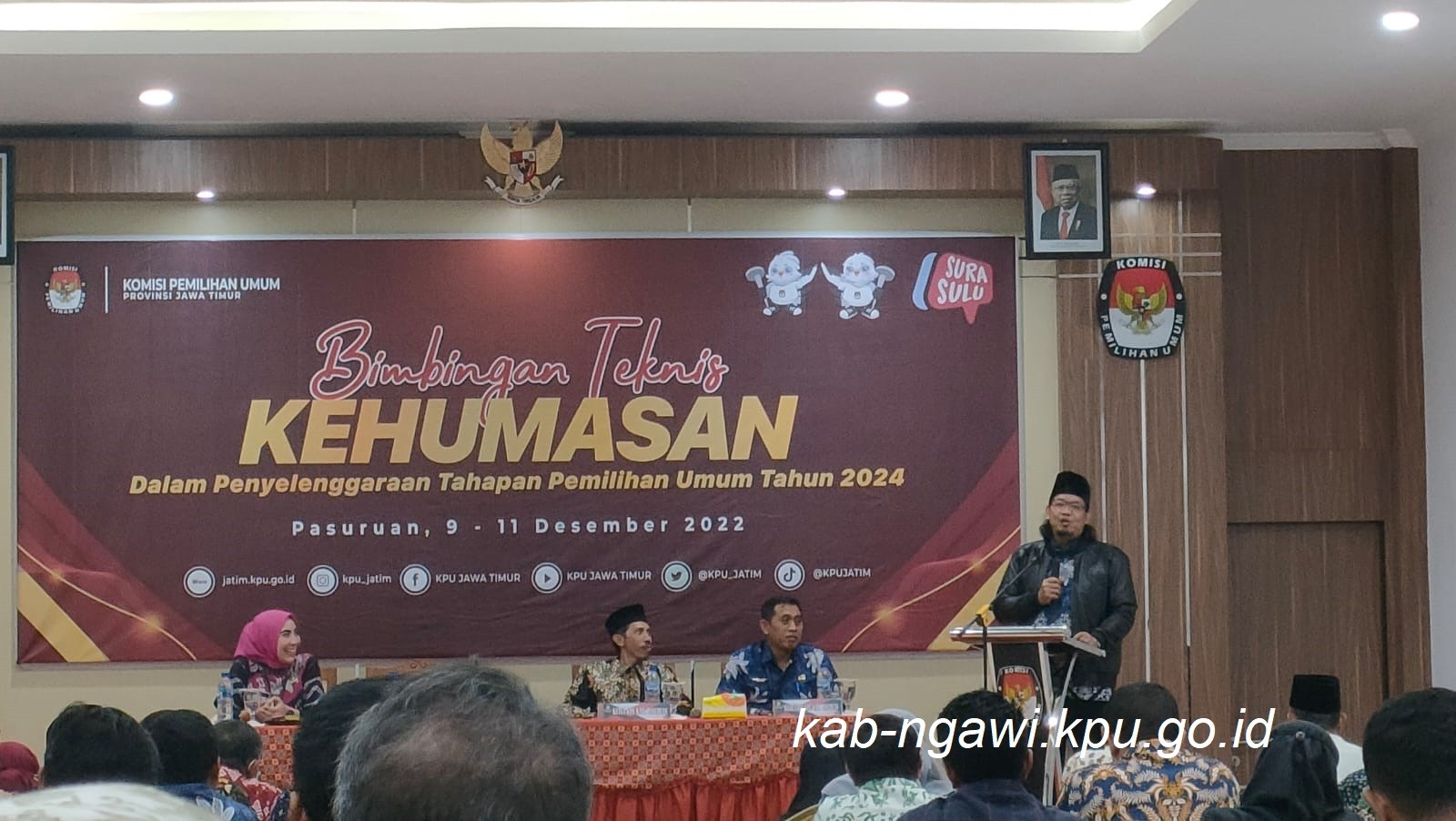 Pasuruan, kab-ngawi.kpu.go.id – Jumat (9/12/2022) Komisi Pemilihan Umum Kabupaten Ngawi mengikuti Bimbingan Teknis (Bimtek) Kehumasan dalam Penyelenggaraan Tahapan Pemilihan Umum Tahun 2024. Kegiarab bertempat di aula Gedung KPU Kabupaten Pasuruan.