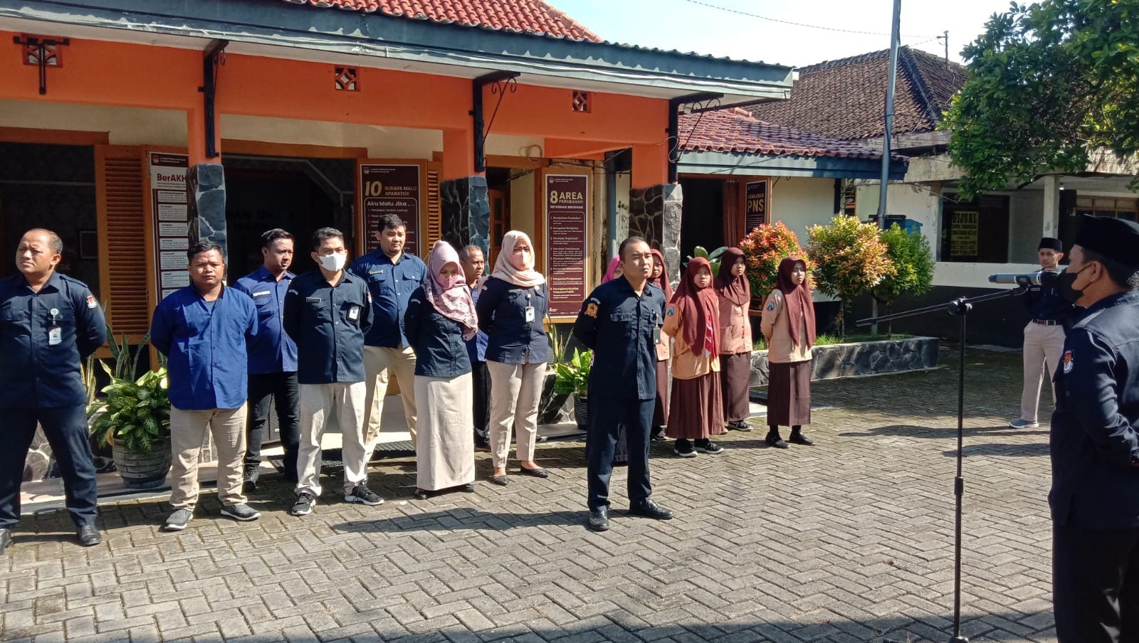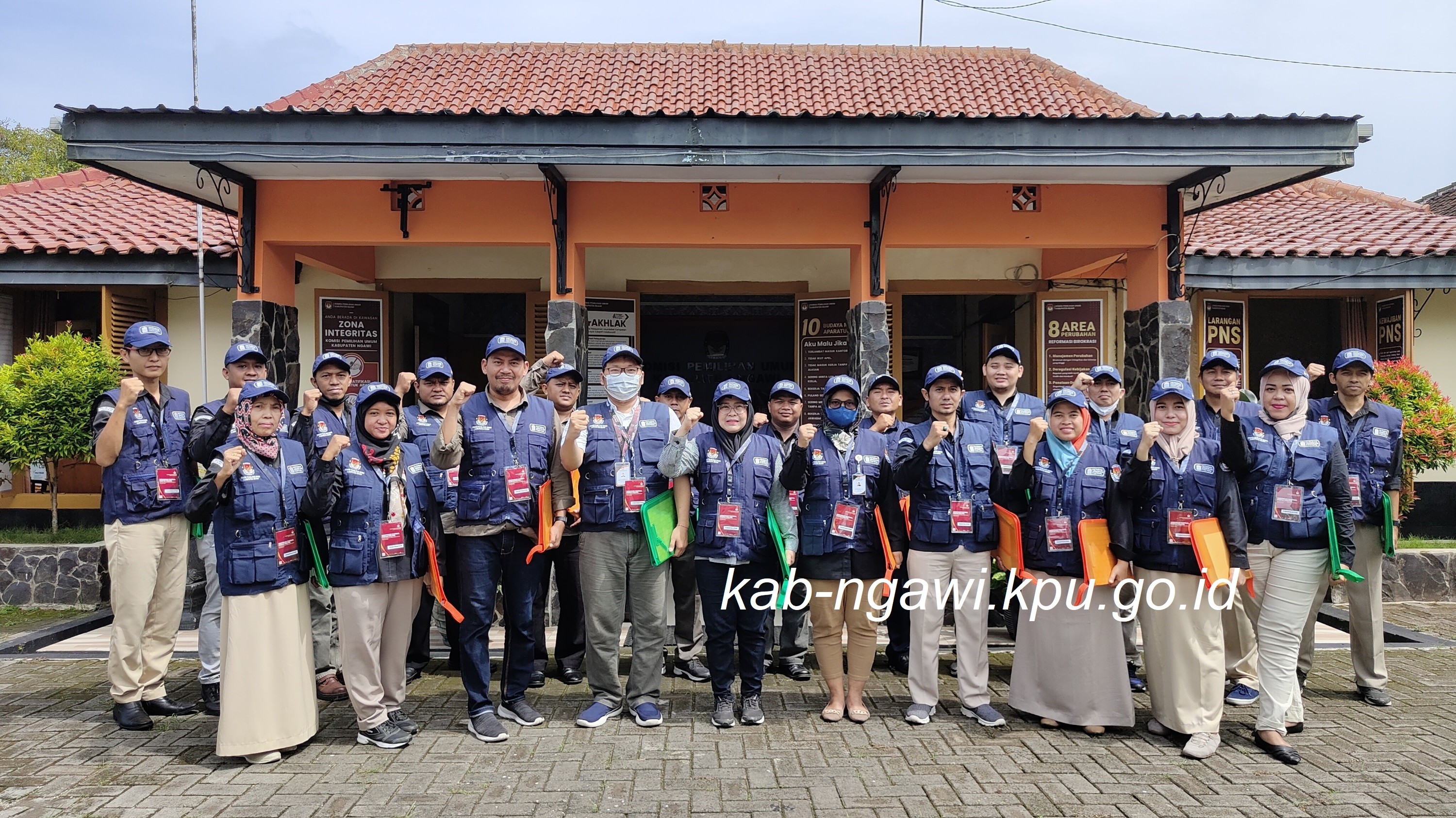 Kesiapan tim verifikasi faktual tampak dalam apel yang dilaksanakan pada Rabu pagi 19 Oktober 2022 di halaman kantor KPU Kabupaten Ngawi di Jalan Untung Suropati 48 Ngawi.