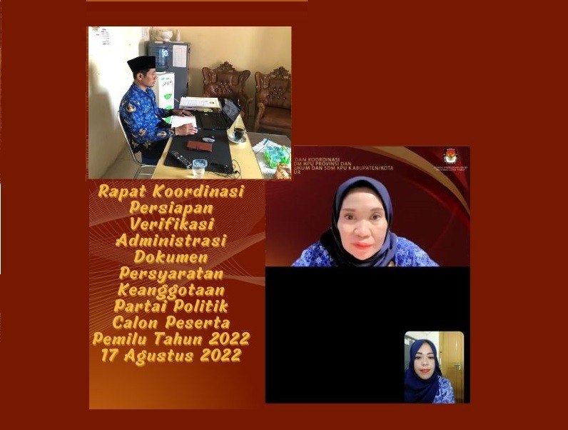 Ngawi, kpu-ngawi.kpu.go.id - Rabu 17 Agustus 2022 KPU Kabupaten Ngawi mengikuti Rakor yang dilaksanakan KPU Provinsi Jatim. Hadir sebagai peserta dari KPU Ngawi, Sekretaris Budi Rahayu dan Kasubbag Tekmas Eka Paramithasari. Acara dilaksanakan melalui media dalam jaringan zoom meeting. Kegiatan dibuka oleh Sekretaris KPU Provinsi Jawa Timur Nanik Karsini pada pukul 09.00 WIB. Agenda yang diikuti oleh Sekretaris dan Kasubbag Tekmaas KPU Kabupaten/Kota se Jawa Timur ini, dalam rangka Verifikasi Administrasi dokumen persyaratan keanggotaan Partai Politik calon Peserta Pemilu Tahun 2022. "Pastikan semua lancar untuk fasilitasi kegiatan ini, baik sarana dan prasarana, kebutuhan anggaran dan kesiapan SDM. Selain itu, terus tingkatkan komunikasi dan koordinasi antara Sekretaris dan Kasubbag Tekmas sehingga informasi tidak akan terputus" pesan Nanik Karsini dalam sambutan pembukaan. Sementara itu, Divisi Teknis Penyelenggaraan KPU Provinsi Jawa Timur Insan Qoriawan, menyampaikan bahwa mau tidak mau jajaran KPU harus bekerja 24 jam, karena paling lambat tanggal 19 Agustus 2022 harus sudah ada hasil verifikasi administrasi terkait TMS (tidak memenuhi syarat) dan kegandaan. Pada bagian akhir, Sekretaris berharap agar tahapan ini dapat berjalan dengan baik dan lancar serta dilaksanakan dengan penuh integritas. Adapun jika menemui permasalahan, KPU Kabupaten Kota, disilakan bertanya ke Provinsi. Kepada Sekretaris, Bu Nanik meminta untuk mengawal kegiatan ini sehingga dapat berjalan dengan sukses. (Humas KPU Ngawi/eka-p)