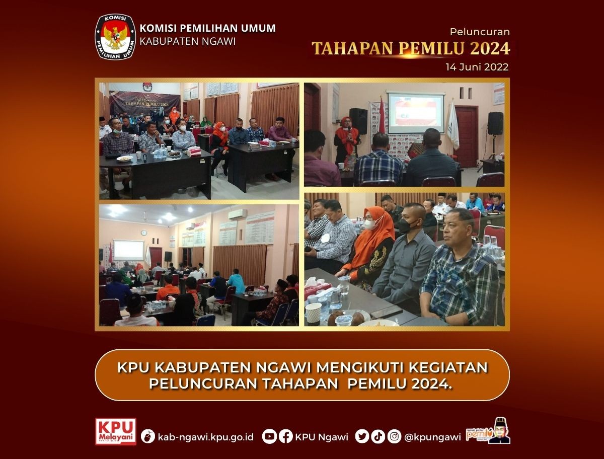 Ketua KPU Ngawi, Prima Aequina Sulistyanti usai acara nonton bersama mengungkapkan bahwa secara jadwal tahapan maka, 14 Juni 2022 sudah dimulai. “Kami mengundang Bapak Ibu sekalian, untuk menginformasikan bahwa hari ini (14 Juni 2022) tahapan Pemilu 2024 sudah dimulai. Ini menyusul, telah ditetapkannya PKPU Jadwal Tahapan. Kami kembali mengajak kita bersama untuk mendukung kesuksesan Pemilu 2024.” kata Prima.