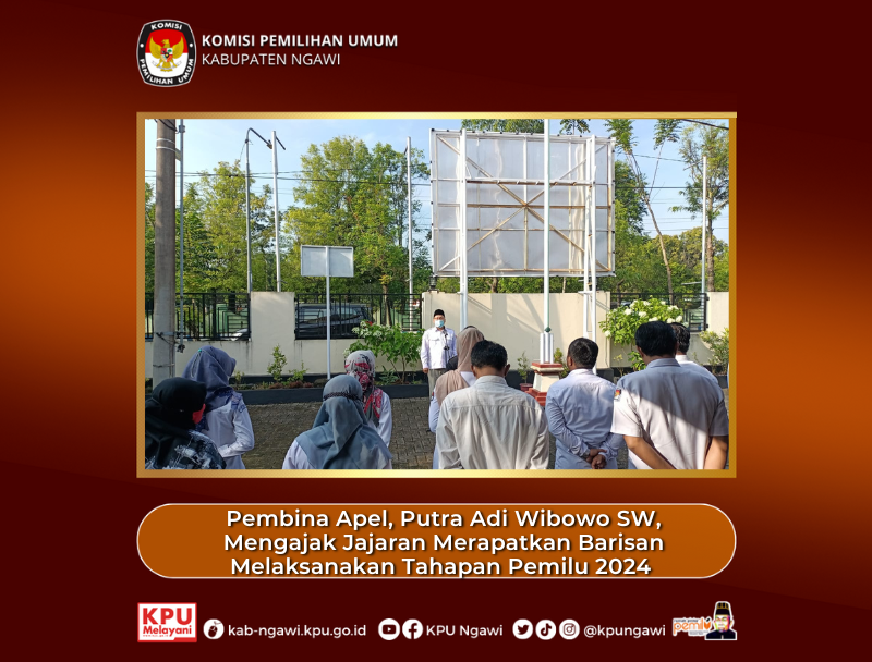 Dalam kesempatan tersebut, Bupati Ngawi diwakili oleh Asisten 1 M. Taufik. Pihaknya meminta terpeliharanya komunikasi dan koordinasi selama perjalanan tahapan Pemilu 2024. Selain itu juga mengingatkan untuk bersama berpartisipasi. “Kebetulan sekali Pemilu 2024 mendatang bertepatan dengan hari Valentine 14 Februari. Semoga ini mudah mengingatkan masyarakat untuk bersama menggunakan hak pilihnya.” pesan Pak Taufik.