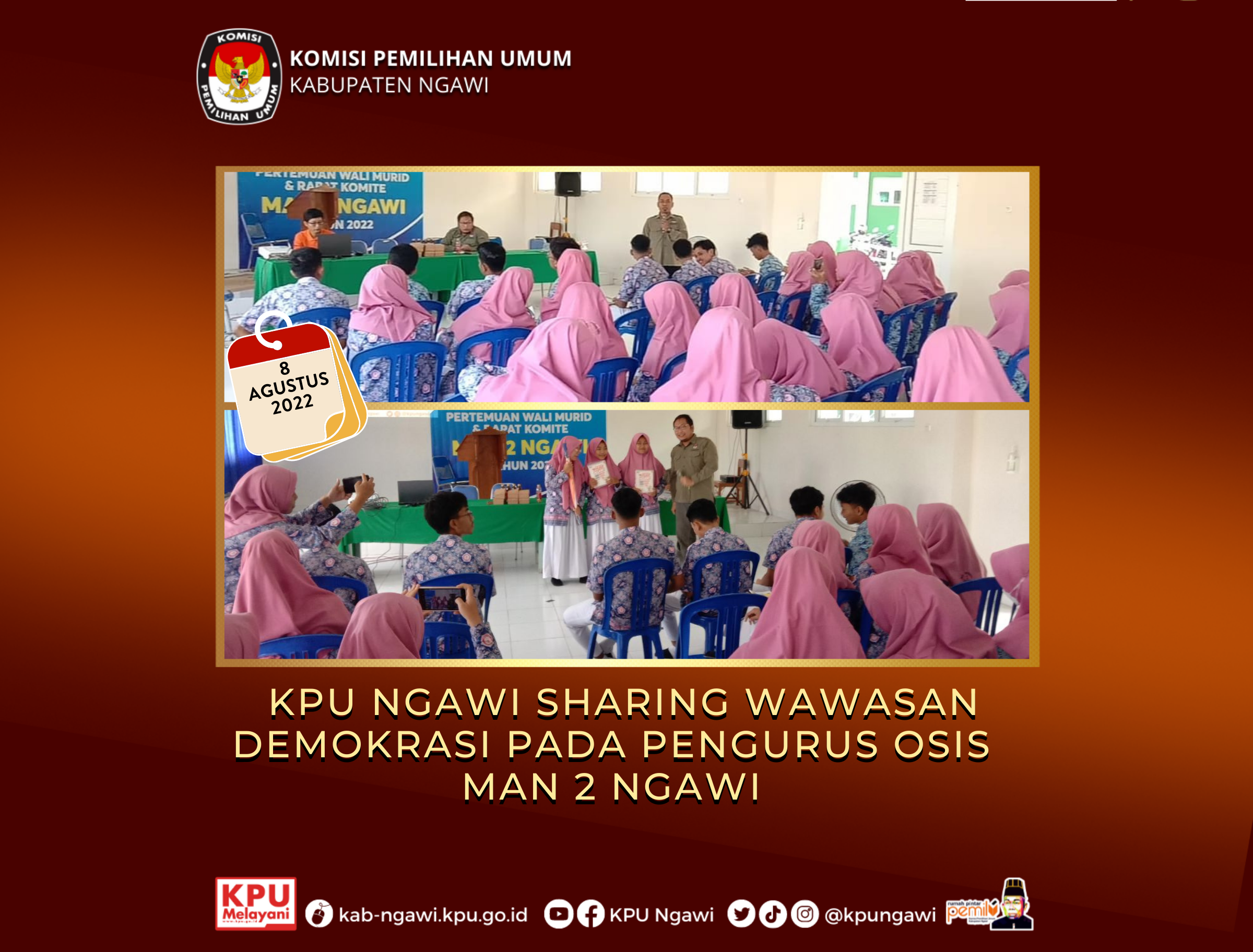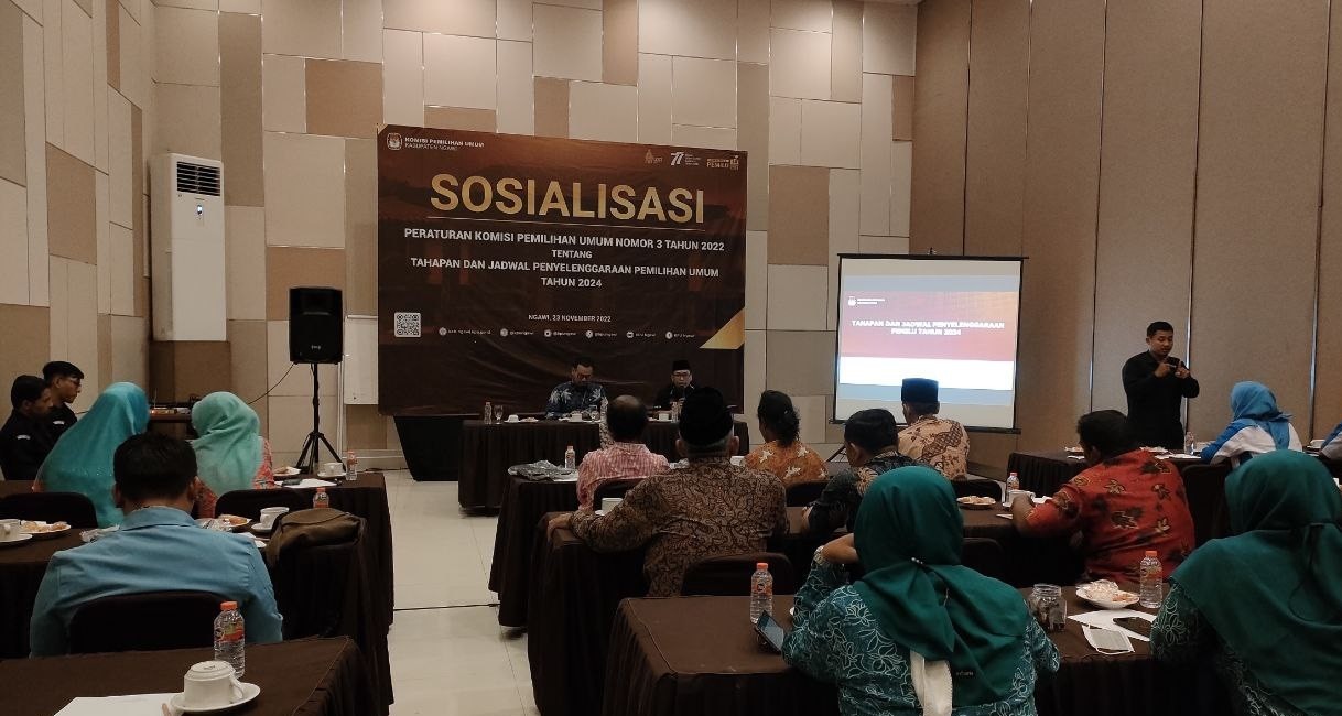 Ngawi, kab-ngawi.kpu.go.id - KPU Ngawi Melaksanakan Sosialisasi PKPU Nomor 3 Tahun 2022 tentang Tahapan dan jadwal Penyelenggaraan Pemilu Tahun 2024. Acara dilaksanakan di Kurnia Convention Hall Jl. Soekarno Ngawi pada Rabu (23/11/2022) Kegiatan dibuka oleh Aman Ridho Hidayat anggota KPU Ngawi Kadiv Teknis Penyelenggaraan Pemilu mewakili ketua KPU yang tengah bertugas di luar kota. Menyampaikan gambaran umum kegiatan yang tengah dilaksanakan oleh KPU Kabupaten Ngawi serta tahapan yang akan datang. Kegiatan yang dihadiri oleh perwakilan organisasi masyarakat dan perwakilan dari difabel tersebut dilaksankaan di Kurnia Convention Hall Jl. Soekarno Ngawi. Selanjutnya Sudarsono Anggota KPU Ngawi Divisi SosIalisasi Pendidikan Pemilih, Partisipasi Masyarakat dan SDM menyampaikan jadwal dan tahapan. “Diantara tahapan yang segera kita jelang adalah rekrutmen badan ad hoc yaitu petugas Pemilu di wilayah Kecamatan dan nantinya juga dilanjutkan dengan rekrutmen Petugas di tingkat Desa Kelurahan. Untuk itu monggo, informasi ini disebarluaskan, untuk bersama-sama kita berpartisipasi menyukseskan pemilu 2024. Beberapa hal yang berbeda kali ini adalah penggunaan aplikasi siakba. Maka Penting sekali para pendaftar harus paham IT” kata Sudarsono. (Humas KPU Ngawi)