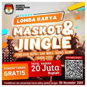 PENGUMUMAN LOMBA KARYA MASKOT DAN JINGLE PILBUP NGAWI 2020 Rabu, 16 Oktober 2019 00:00 331 PENGUMUMAN LOMBA KARYA MASKOT DAN JINGLE PILBUP NGAWI 2020 Pengumuman bisa diunduh disini. Baca Selengkapnya