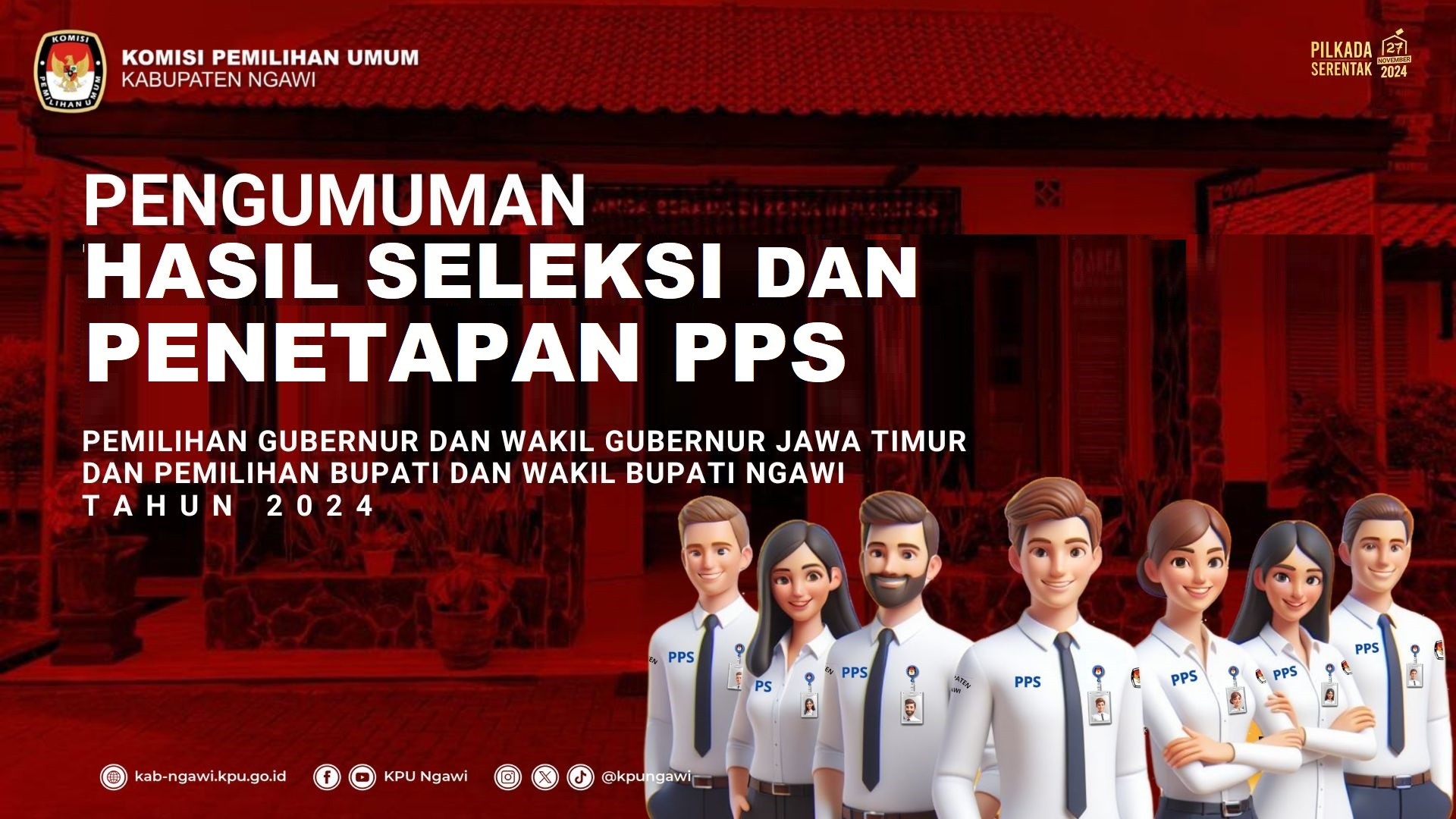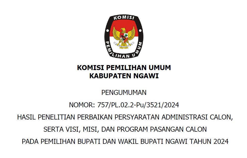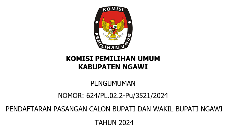 Dalam rangka pembentukan Calon Petugas Pemutakhiran Data Pemilih untuk Pemilihan Gubernur dan Wakil Gubernur, Bupati dan Wakil Bupati, dan Wali Kota dan Wakil Wali Kota Tahun 2024, Komisi Pemilihan Umum Kabupaten Ngawi melalui Panitia Pemungutan Suara pada setiap Desa/Kelurahan mengundang Warga Negara Indonesia yang memenuhi kualifikasi untuk mendaftarkan diri menjadi Pantarlih dengan ketentuan sebagai berikut: