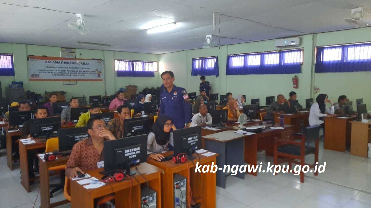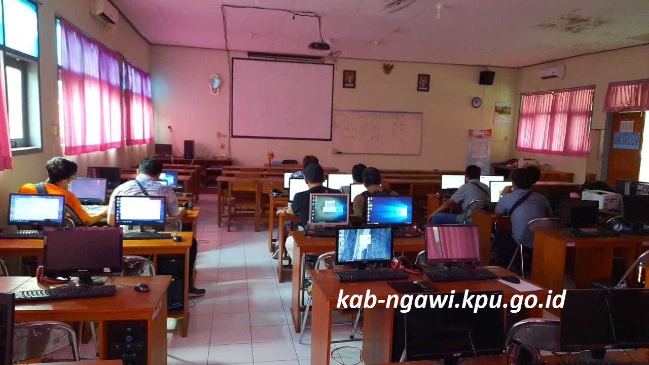 Ngawi, kab-ngawi.kpu.go.id – Kamis, 30 Januari 2020, KPU Kabupaten Ngawi melaksanakan ujian materi berbasis CAT atau Computer Assisted Test. Kegiatan ujian, dilaksanakan dengan 3 sesi. Sesi 1 dilaksanakan pukul 13.00-14.00, sesi 2 pukul 14.00-15.00, serta sesi 3 pukul 15.00-16.00 WIB. Waktu pelaksanaan tes CAT semula jam 09.00 wib, mundur menjadi jam 13.00. Ini dikarenakan adanya gangguan teknis pada perangkat server CAT. Menanggapi hal ini, Sudarsono, komisioner KPU Ngawi yang membidangi SDM menyampaikan permohonan maaf. “Melalui media ini, kami KPU Kabupaten Ngawi, meminta maaf atas ketidaknyamanan peserta. Karena harus menyesuaikan jadwal, mundur dari semula. Yang jelas, saat terjadi gangguan pada server diawal kegiatan, kami bersama teknisi SMKN 1 Ngawi, mengambil langkah untuk berupaya maksimal. Agar secepatnya bisa melaksanakan kegiatan. Dan kami bersyukur, jam 13.00 sudah bisa dilaksanakan.” kata Sudarsono disela kegiatan pengawasan ruang test. Seperti diketahui, terdapat 376 peserta yang mendaftar dalam rekrutmen anggota PPK Panitia Pemilihan Kecamatan Pemilihan Bupati dan Wakil Bupati Ngawi Tahun 2020. Dari jumlah itu, yang lolos dari seleksi administrasi dan berhak mengikuti test CAT, sejumlah 366 orang. Terkait dengan hasil atau nilai CAT, peserta langsung bisa melihatnya setelah mengerjakan semua soal. Nilai langsung tampil di layar monitor masing-masing. Untuk jadwal pengumuman peserta yang masuk seleksi wawancara, atau 10 besar, adalah diantara tanggal 3 sampai 5 Februari 2020 melalui laman web Komisi Pemilihan Umum Kabupaten Ngawi . (hupmas)