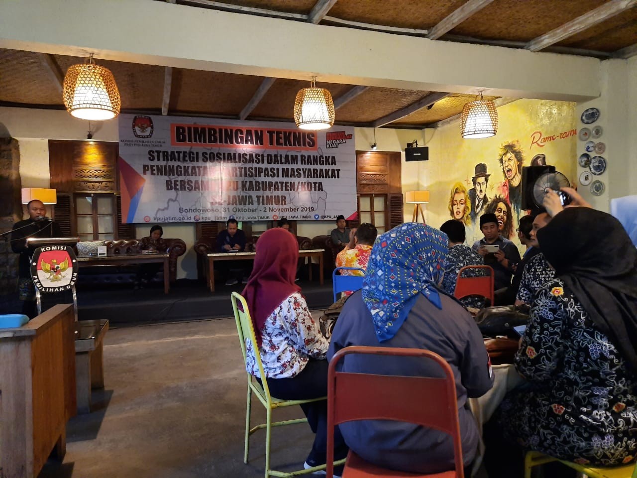 Bondowoso, kab-ngawi.kpu.go.id – Kamis (31/10/2019) KPU Ngawi mengikuti Bimbingan Teknis Strategi Sosialisasi dalam rangka Peningkatan Partisipasi Masyarakat yang di laksanakan oleh KPU Jawa Timur. Kegiatan yang di laksanakan di Bondowoso selama tiga hari tersebut, di buka langsung oleh Ketua KPU Jawa timur Choirul Anam. Dalam sambutannya, mengingatkan kepada Komisioner Kabupaten/Kota untuk selalu kompak, agar kegiatan KPU di daerah masing-masing bisa berjalan sesuai dengan jadwal. Dalam hal Sosialisasi, Ketua KPU Provinsi Jatim meminta Divisi Sosialisasi dan Parmas untuk mencari strategi sosialisasi agar partisipasi meningkat dalam melaksanakan Pilkada 2020. Sedangkan Rochani, Komisioner KPU Jawa Timur Divisi SDM dan Litbang mengingatkan agar komisioner tetap menjaga kondisi kesehatan, karena semakin padatnya acara KPU. Kegiatan Bimtek, dari Ngawi hadir Sudarsono Komisioner yang membidangi Sosialisasi, Pendidikan Pemilih, Partisipasi Masyarakat dan SDM dengan didampingi salah seorang tim Teknis dan Parmas. (Ds)