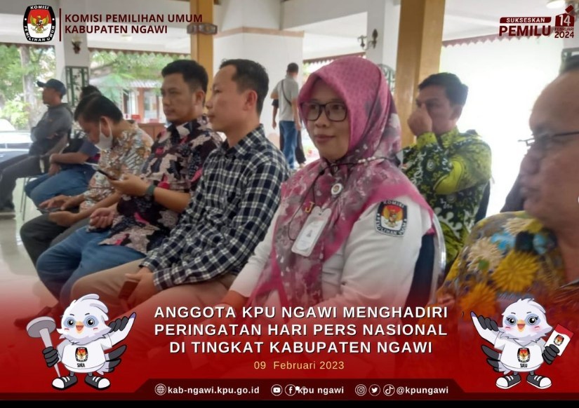 Ngawi, kab-ngawi.kpu.go.id - Anggota KPU Kabupaten Ngawi menghadiri kegiatan Peringatan Hari Pers Nasional, tingkat Kabupaten Ngawi. Kegiatan bertempat di Pendopo Wedya Graha Kabupaten Ngawi, Kamis (09/02/2023).