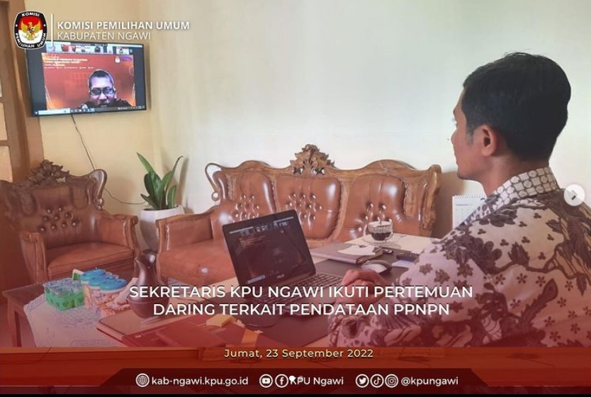 Ngawi, kab-ngawi.kpu.go.id – Jum’at (24/09/2022), Sekretaris KPU Kabupaten Ngawi Budi Rahayu mengikuti Rapat Koordinasi Pendataan PPNPN KPU Provinsi Jawa Timur secara daring melalui aplikasi zoom meeting.