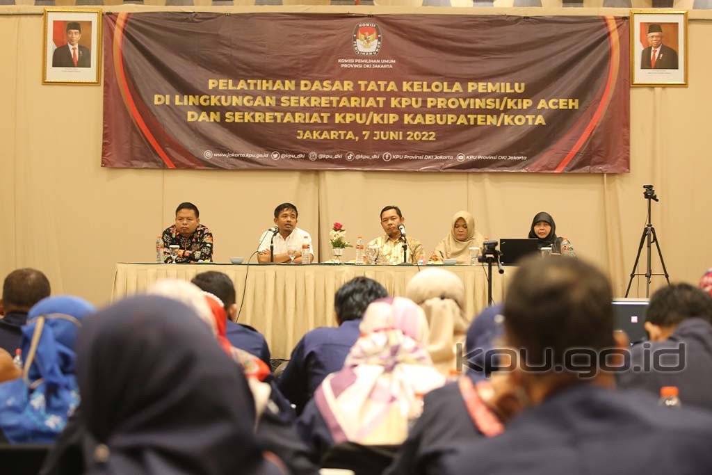 Jakarta, kpu.go.id – Penyelenggara adalah satu aktor penentu suksesnya penyelenggaraan pemilu maupun pemilihan. Strategisnya posisi ini menuntut penyelenggara pemilu cakap dalam segala bidang, tidak hanya dalam pengalaman tapi juga berlandaskan pengetahuan. Hal tersebut ditekankan Anggota KPU RI Idham Holik, saat memberikan pengarahan kegiatan Pelatihan Dasar Tata Kelola Pemilu di Lingkungan Sekretariat KPU Provinsi/KIP Aceh, yang diikuti Aparatur Sipil Negara (ASN) KPU provinsi dan KPU kab/kota se-DKI Jakarta, Selasa (7/6/2022). “Apalagi kalau kita mengingat pemilu dan pemilihan terselenggara dalam konteks yang berbeda. Bisa jadi kita punya pengalaman di pemilu tapi karena berbeda maka kita harus siap beradaptasi kembali, mau tidak mau kita harus siap hadapi tantangan,” ucap Idham yang hadir didampingi Ketua KPU DKI Jakarta, Sunardi, didampingi Anggota KPU DKI Jakarta, Nurdin, Marlina, Deti Kurniawati dan Sekretaris KPU DKI Jakarta Martin Nurhusin. Idham mengatakan demokrasi yang baik adalah demokrasi yang berbasiskan pengetahuan. Tanpa adanya pengetahuan, demokrasi bisa mengarah pada praktek-praktek anarkis dan miss manajemen dalam proses administrasi. “Maka kita hadir di lembaga KPU tidak sekadar hadir saja, tapi kita membawa misi kebangsaan, misi demokrasi. Karena demokrasi jantung dari kehidupan bangsa dan negara,” tambah Idham. Sebelumnya dalam pengarahan yang lain melalui rekaman video, Sekretaris Jenderal KPU RI, Bernad Dermawan Sutrisno menekankan pentingnya aspek konsolidasi internal dan membangun kesatuan organisasi dan institusi kesekretariatan KPU yang profesional, berintegritas dan modern. Dia juga mengatakan perlunya menguasai pengetahuan dan pemahaman dasar yang benar tentang kepemiluan yang menjadi core business KPU. “Kegiatan ini merupakan bagian dari upaya kita untuk membentuk Sumber Daya Manusia Sekretariat Jenderal KPU yang ‘Berkompeten, Berintegritas, dan Berwibawa’,” ucapnya Bernad juga meminta para peserta untuk merenungi kalimat yang dia ucapkan, yakni seseorang akan memiliki kewibawaan apabila berintegritas; dan seseorang akan dapat berintegritas apabila memiliki kompetensi yang tinggi untuk melaksanakan pekerjaan. Turut hadir sebagai pendalaman materi, Nurhasyim dari Badan Riset dan Inovasi Nasional (BRIN) serta Sigit Djoyowardono Penata Kelola Pemilu Ahli Utama KPU RI. (humas kpu ri dianR/foto: dianR/ed diR)