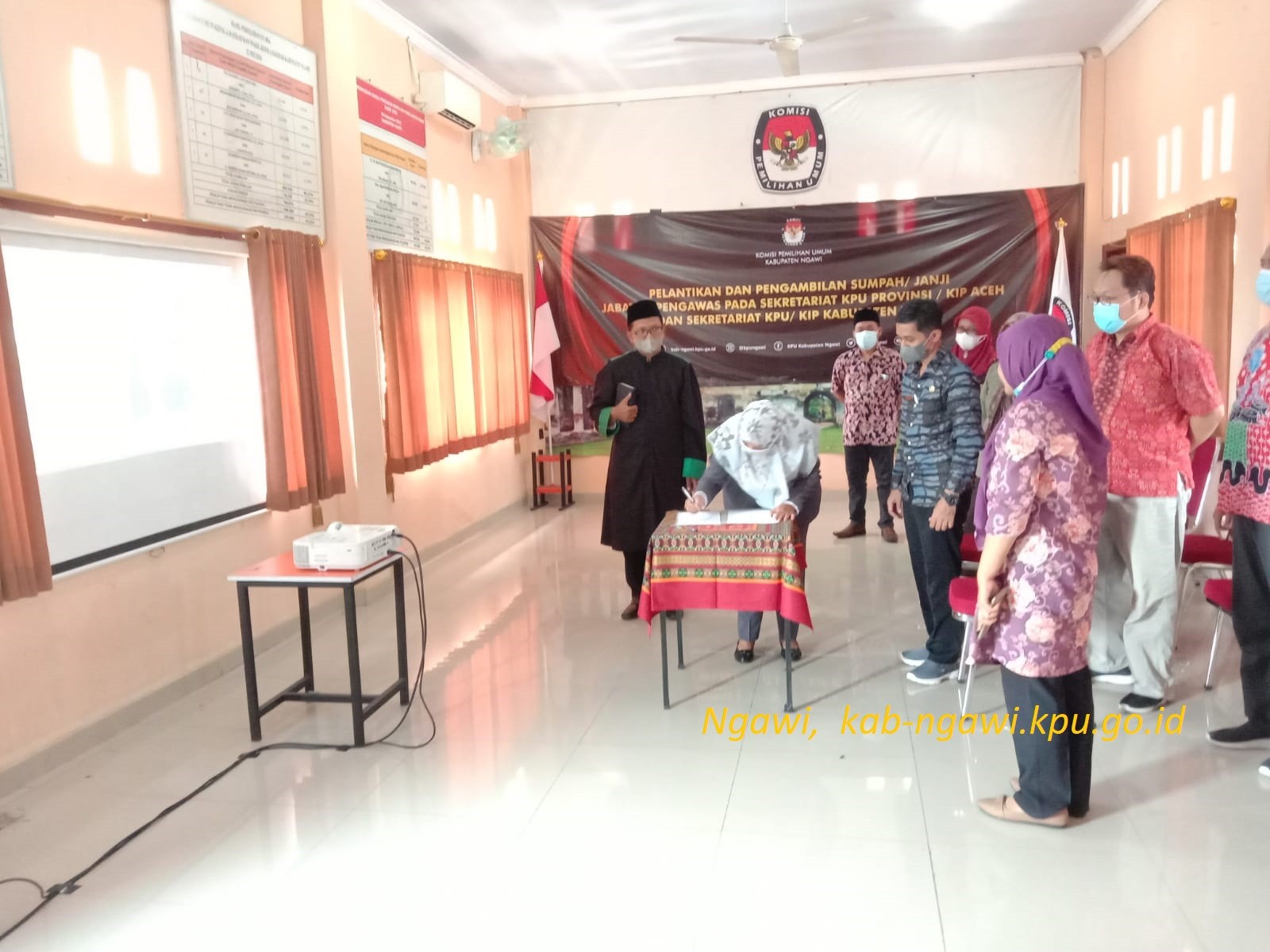 Agenda pelantikan serentak tersebut, dilaksanakan secara secara hybrid. Kegiatan pelantikan dan pengambilan sumpah dipandu dari KPU Provinsi Jawa Timur melalui media zoommeeting. Sementara Jajaran di KPU Ngawi mengikuti kegiatan di ruang media center Ngawi.