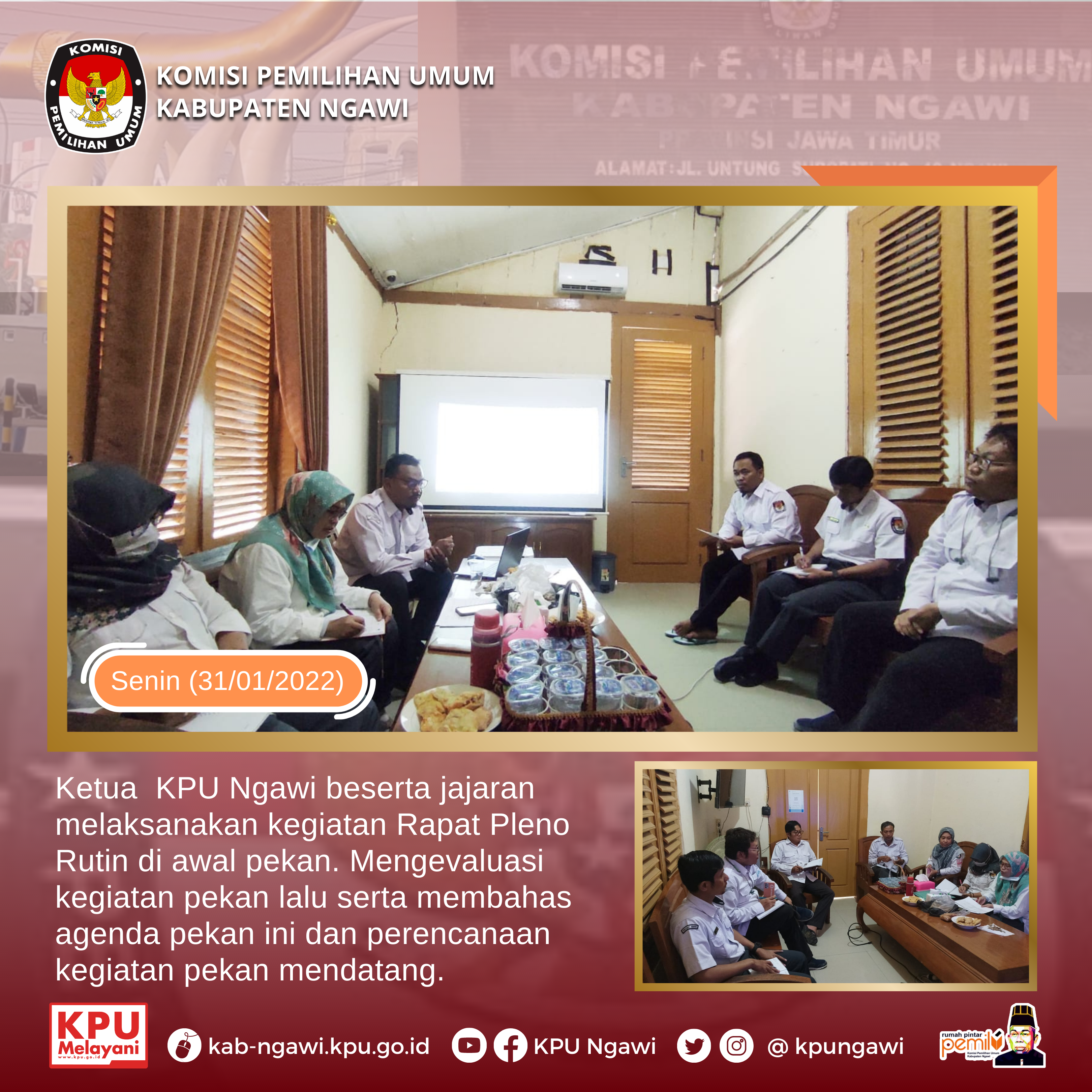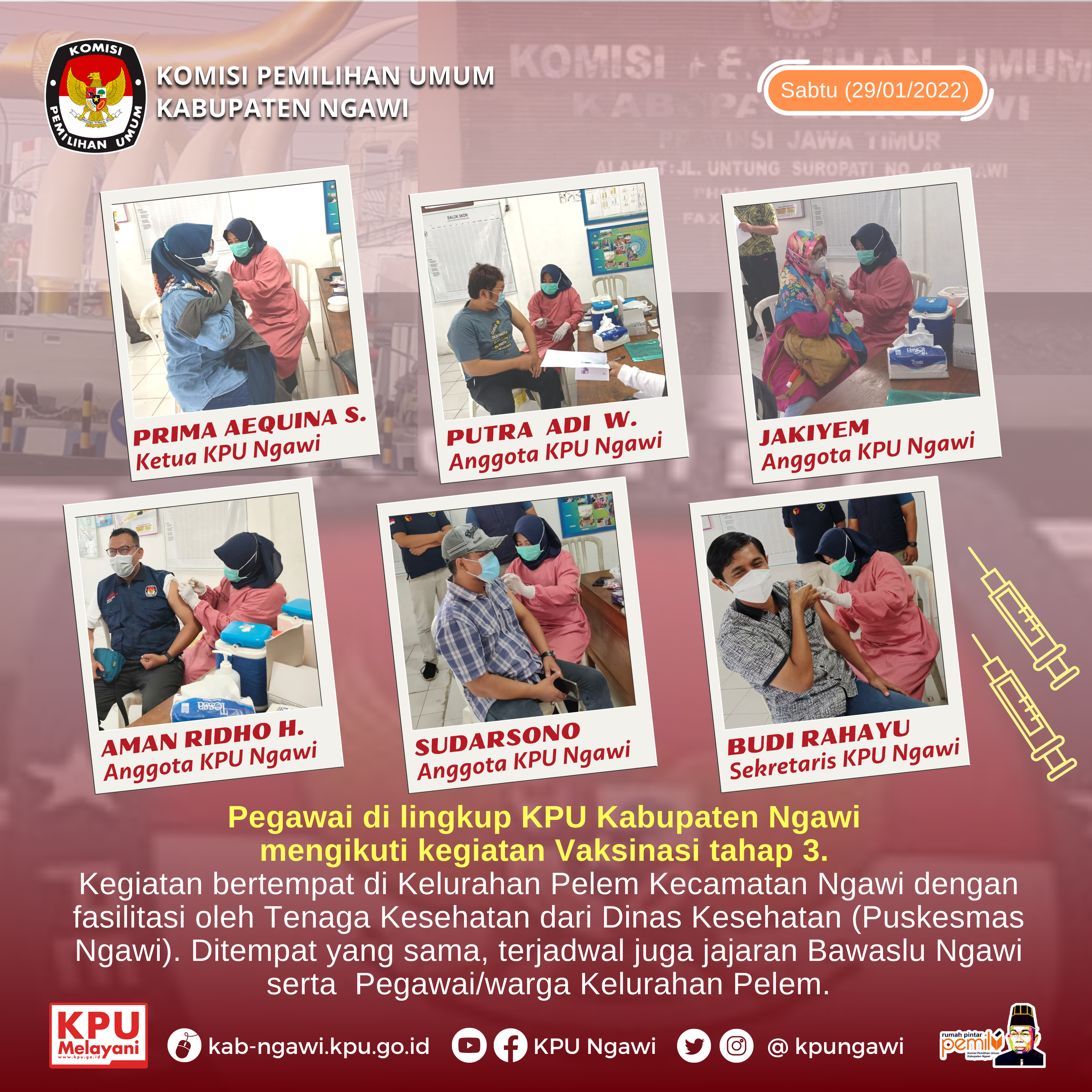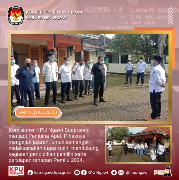 Catatan Komisioner Hari H Pemilu 2024 telah resmi ditetapkan, melalui surat keputusan KPU RI nomor: 21 tahun 2022, perihal Hari dan Tanggal Pemungutan Suara pada Pemilihan Umum Presiden dan Wakil Presiden, anggota DPR, anggota DPD dan anggota DPRD serentak tahun 2024, yaitu pada tanggal 14 Februari 2024. Adapun tahapan, program dan jadwal Pemilu 2024 sampai dengan hari ini masih dalam proses pembahasan dalam rapat konsultasi antara KPU dengan DPR RI. Terlepas dari jadwal yang diusulkan KPU yang akan disepakati, tahapan pemilu harus dimulai 20 bulan sebelumnya sesuai ketentuan Undang-Undang Nomor 7 Tahun 2017 tentang Pemilu. Pasal 167 ayat (6) menyebutkan tahapan penyelenggaraan pemilu dimulai paling lambat 20 bulan sebelum hari pemungutan suara. Beberapa ketentuan lain mengenai tahapan-tahapan pemilu yang bisa diketahui dari Undang-undang Pemilu antara lain : pendaftaran partai politik yang menurut UU Pemilu dilaksanakan KPU paling lambat 18 bulan sebelum hari pemungutan suara. Verifikasi Parpol peserta Pemilu Paling lambat 14 bulan sebelum Hari H, Penetapan Parpol peserta Pemilu Paling lambat 14 bulan sebelum Hari H, kemudian Pendaftaran Paslon Presiden & Wakil Presiden : Paling lama 8 bulan sebelum Hari H, Pengajuan bacalon Anggota DPR & DPRD: Paling lambat 9 bulan sebelum Hari H, Pengajuan calon Anggota DPD : Paling lambat 9 bulan sebelum Hari H, sedangkan pelaksanaan Kampanye dilakukan 3 hari setelah penetapan Calon Presiden dan Wapres, dan Penetapan Caleg DPR dan DPRD. Dari ketentuan-ketentuan yang terdapat dalam pasal-pasal diatas, bisa disimulasikan dengan menarik kebelakang dari hari pelaksanaan pemungutan suara yang sudah resmi ditetapkan. Tulisan Aman Ridho Hidayat (Anggota KPU Ngawi Divisi Teknis Penyelenggaraan)