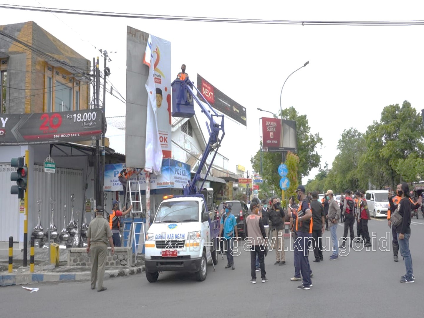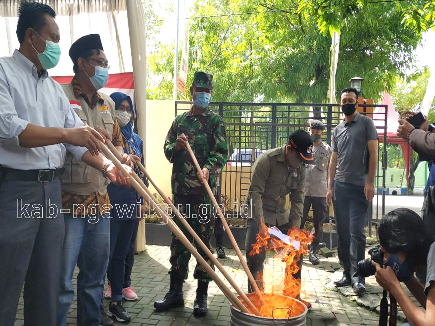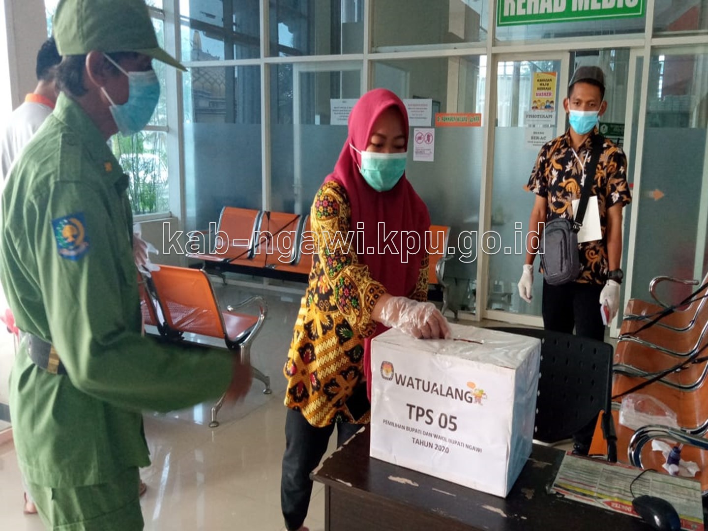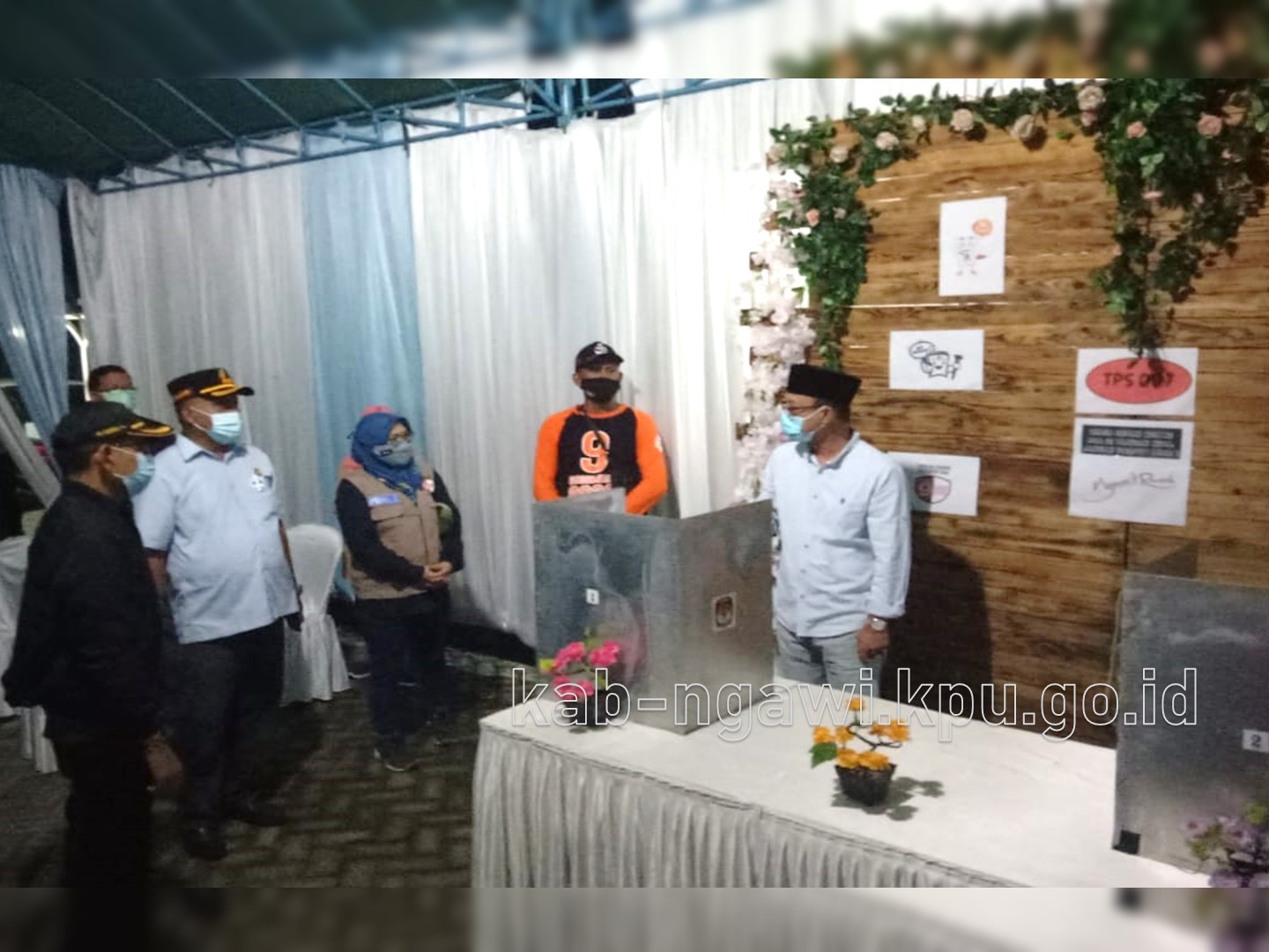 Ngawi, kab-ngawi.kpu.go.id – Selasa malam (8/12/2020), Bupati Ngawi meninjau kesiapan sejumlah TPS. Dalam monitoring tersebut, Bupati didampingi Sekretaris Daerah Ngawi Mokh. Sodiq Triwidiyanto, Forum Koordinasi Pimpinan Daerah (Forkopimda) Ngawi, Ketua KPU Ngawi serta Bawaslu Ngawi. Tim berangkat dari Pendopo Wedya Graha, dengan tujuan awal TPS 7 Kelurahan Margomulyo Kecamatan Ngawi, TPS ini berada di Jalan Hasanudin Ngawi. Dari PPS Margomulyo, Bupati mendapatkan penjelasan alur pemilih. Pria yang akrab disapa Pak Kanang tersebut sempat pula menanyakan tentang tempat sampah yang akan digunakan untuk menghimpun sarung tangan setelah digunakan. Selanjutnya, rombongan bergerak menuju ke Wilayah Kecamatan Paron, di Desa Semen tepatnya di TPS 10. Kemudian, mengunjungi Kecamatan Geneng Desa Tambakromo TPS 1. Kepada media Bupati Ngawi mengungkapkan bahwa dari TPS yang dikunjungi telah melakukan persiapan untuk melayani pemilih, maupun dalam hal penerapan protokol kesehatan. Melalui penerapan protokol kesehatan, menurutnya menjadi langkah pencegahan penularan Covid-19. Bupati juga menegaskan bahwa, Gugus Tugas Percepatan penanganan Covid 19 juga terus bergerak bersama Kepala Desa untuk menghindari penularan sekaligus tidak menimbulkan kluster baru dalam Pelaksanaan Pilkada 2020 ini. Sementara itu, Ketua KPU Kabupaten Ngawi Prima Aequina Sulistyanti, disela kunjungan menyampaikan bahwa jajarannya telah bersinergi dengan berbagai pihak untuk mewujudkan TPS yang aman dan sehat. “Kami juga terus menyosialisasikan hal-hal baru di TPS, termasuk penyiapan bilik khusus bagi pemilih suhu diatas normal, serta sterilisasai TPS secara berkala dengan disinfektan oleh petugas. KPPS dan PPS juga menyerukan agar memakai masker, dan mematuhi prokes saat menggunakan hak pilihnya. Ini semua untuk mencegah penularan covid -19” ungkap Prima.