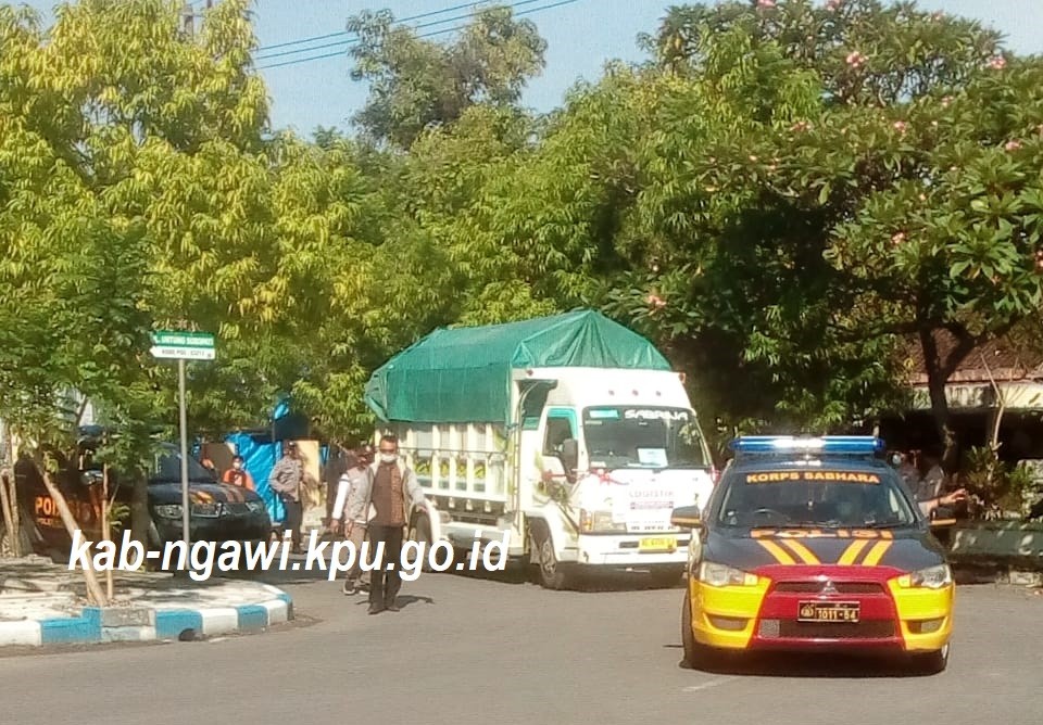 Ngawi, kab-ngawi.kpu.go.id – Sabtu (5/12/2020), Komisi Pemilihan Umum Kabupaten Ngawi melaksanakan distribusi logistik ke berbagai Kecamatan, untuk Pemilihan Bupati dan Wakil Bupati Ngawi 2020. Ketua KPU Kabupaten Ngawi Prima Aequina Sulistyanti menuturkan bahwa pengiriman logistik akan berlangsung selama 2 hari, Sabtu hingga Minggu (5 dan 6 Desember 2020). Sarana prasarana pemungutan dan penghitungan suara di TPS yang dikirim, diantaranya adalah kotak suara, surat suara, ID card, Formulir, ATK, bantalan dan alat coblos, tinta dan lainnya. Pada hari Sabtu logistik dikirim ke wilayah kecamatan yang mayoritas jarak tempuhnya cukup jauh. Diawali dari Paron, Jogorogo, Kendal, Ngrambe, Sine, Kedunggalar, Widodaren, Mantingan, dan Karanganyar. Sedangkan untuk Minggu pengiriman untuk kecamatan Pitu, Kasreman, Padas, Bringin, Karangjati, Pangkur, Kwadungan, Geneng, Gerih dan Ngawi. Dalam pengelolaan logistik yang dilakukan, KPU Ngawi melakukan antisipasi dari air hujan baik selama perjalanan maupun saat penyimpanan dilokasi kecamatan masing-masing. Ini terlihat, dimana setiap Kotak Suara diamankan dengan lapisan plastik. Adapun dalam proses pengiriman, juga melibatkan berbagai unsur, baik Polri maupun TNI, serta sinergi antara petugas dari KPU, PPK dan Pengawas. Ini semua untuk memastikan logistik aman hingga lokasi penyimpanan di kecamatan masing-masing. Pengiriman logistik ke Kecamatan dilaksanakan dengan waktu dekat menjelang hari pelaksanaan pemungutan suara, hal ini untuk efisiensi waktu dalam penyimpanan dan memastikan logistik aman di tempat penyimpanan, sebelum digunakan.
