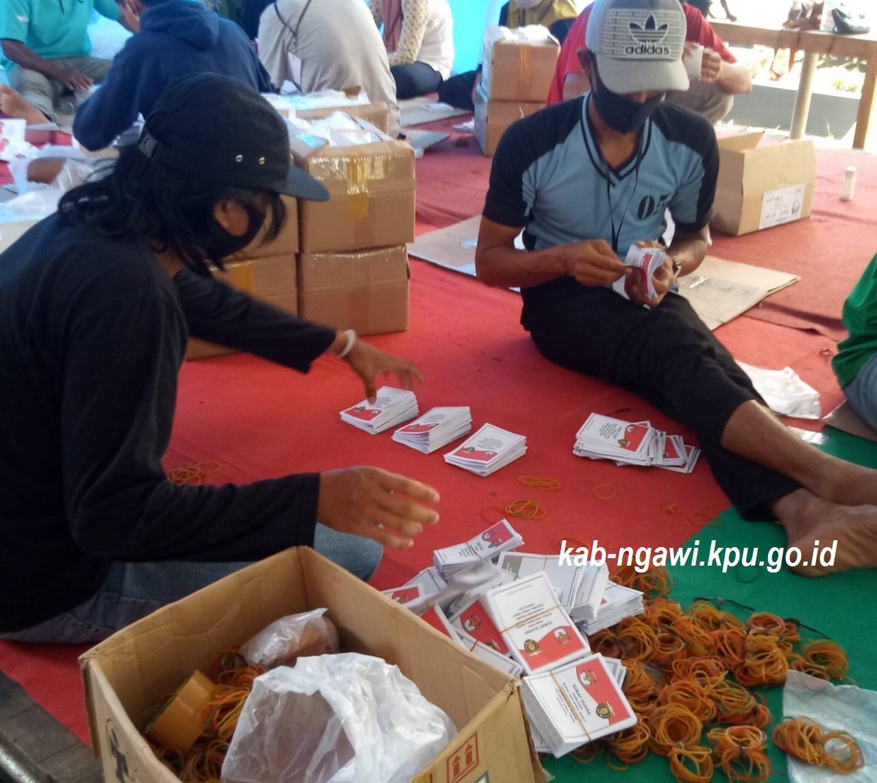 Ngawi, kab-ngawi.kpu.go.id – Komisi Pemilihan Umum Kabupaten Ngawi telah melaksanakan kegiatan sortir dan pelipatan surat suara, Minggu malam (29/11/2020). Kegiatan sendiri telah dilaksanakan sejak Jumat, 27 November lalu. Dalam kegiatan yang dilaksanakan di komplek kantor KPU Ngawi ini, melibatkan puluhan orang, dengan dijaga ketat oleh pihak keamanan dan pemberlakukan protokol kesehatan. Untuk tenaga sortir lipat, terbagi dalam dua tim besar. Tim A pengerjaan pukul 08.00 – 16.00 WIB, dan Tim B pukul 18.00 – 22.00 WIB. Untuk surat yang disortir selama tiga hari, jumlah awalnya adalah 703.945 lembar (sesuai jumlah DPT), ditambah 2,5 persen sebagai surat suara cadangan, dan 2.000 lembar untuk kebutuhan pemungutan suara ulang. Pensortiran sendiri untuk memisahkan surat suara yang tidak memenuhi syarat, seperti kotor, buram atau tidak jelas, cetakan surat suara mengandung bercak, hingga surat suara yang kusut. Anggota KPU Ngawi, Aman Ridho Hidayat menyampaikan bahwa, Surat suara yang rusak dipisahkan, dan dibuatkan berita acara untuk kemudian masuk dalam agenda rapat pleno untuk disampaikan pada pihak percetakan, untuk mendapatkan ganti. Seperti diketahui, Pemilihan Bupati dan Wakil Bupati Ngawi Tahun 2020 akan digelar pada 9 Desember 2020, dengan satu pasangan calon, yaitu Ony Anwar berpasangan dengan Dwi Rianto Jatmiko. Pada surat Suara, Pasangan Ony-Antok memperoleh posisi sebelah kiri (sebelah kiri dari sisi pemilih) pada surat suara pemilihan. Sedangkan sebelah kanan pada surat suara berupa gambar kotak kosong. (Humas KPU Ngawi)