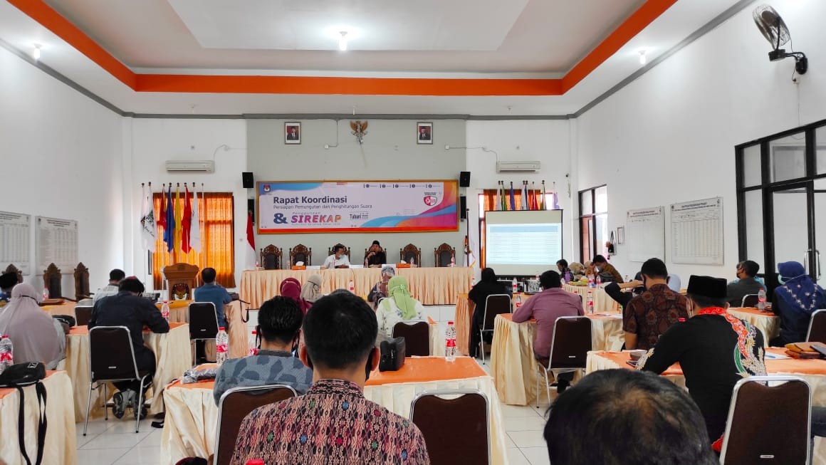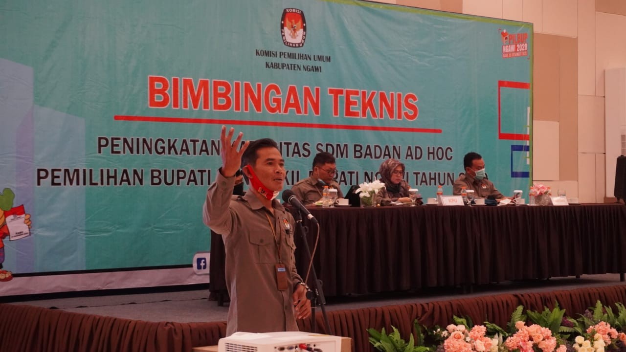 Ngawi, kab-ngawi.kpu.go.id – Rabu (21/10/2020), KPU Ngawi menggelar Bimbingan Teknis Peningkatan Kapasitas SDM Badan Adhock Pilbup 2020. Acara diikuti oleh PPK bersama sekretariat dari 19 Kecamatan. Kegiatan bertempat di Kurnia Convention Hall. Ketua KPU Ngawi Prima Aequina Sulistyanti dalam pembukaan menyampaikan bahwa keberadaan penyelenggara yaitu Badan Achok khususnya PPK, menjadi ujung tombak pelakasaan Pilbup di wilayah Kecamatan. Untuk itu perlu terus meningkatkan kapasitas, tidak hanya dalam pelaksanaan teknis tahapan, namun juga kualitas dalam tim work. PPK serta sekretariatan harus bersinergi dalam setiap tahapan. Menurut Bu Prima sekarang bukan saatnya lagi berbeda arah, namun justru bersama fokus bersama melaksanakan amanah yang diemban bersama, demi suksesnya Pilbup Ngawi 2020. Dalam acara Bimtek tersebut, penyampaian materi dimulai dari Ketua KPU Ngawi Prima Aequina Sulistyanti, mengingatkan kembali peran penyelenggara dalam Pemilihan Serentak. Sementara itu, Sekretaris KPU Eddy Sukamto menitikberatkan harmoni dan sinergi PPK serta Sekretariat. Sudarsono (Divisi Sosialisasi dan SDM) memberikan materi fokus pada pentingnya peningkatan kapasitas serta kecerdasan mennyelesaikan masalah. Disambung dengan materi Putra Adi Wibowo (Divisi Data) mengingatkan kembali tentang perjalanan tahapan terkait data hingga DPT. Ini agar semua personil mengetahui gambaran umum prosesnya. Adapun Aman Ridho Hidayat (Divisi Teknis) memberikan wawasan hal-hal baru pada TPS di masa pandemi. Acara berlangsung serius namun namun juga terdapat beberapa permainan untuk melatih konsentrasi serta mencegah kejenuhan saat mengikuti acara. Dalam kesempatan tersebut, diantara jajaran komisioner, Jakiyem selaku Divisi Hukum, tidak tampak dikarenakan tengah menghadiri agenda lain yang bersamaan waktunya. (Humas/kpu-ngawi/bimo/dok-ade)
